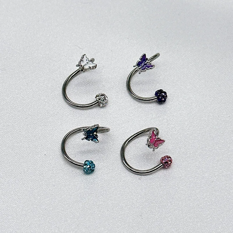 Lunivop 1PC C Shape 316L Stainless Steel Lip Piercing Korean Aesthetic Fashion Butterfly Nose Ring Daith Cartilage Earring Body Jewelry
