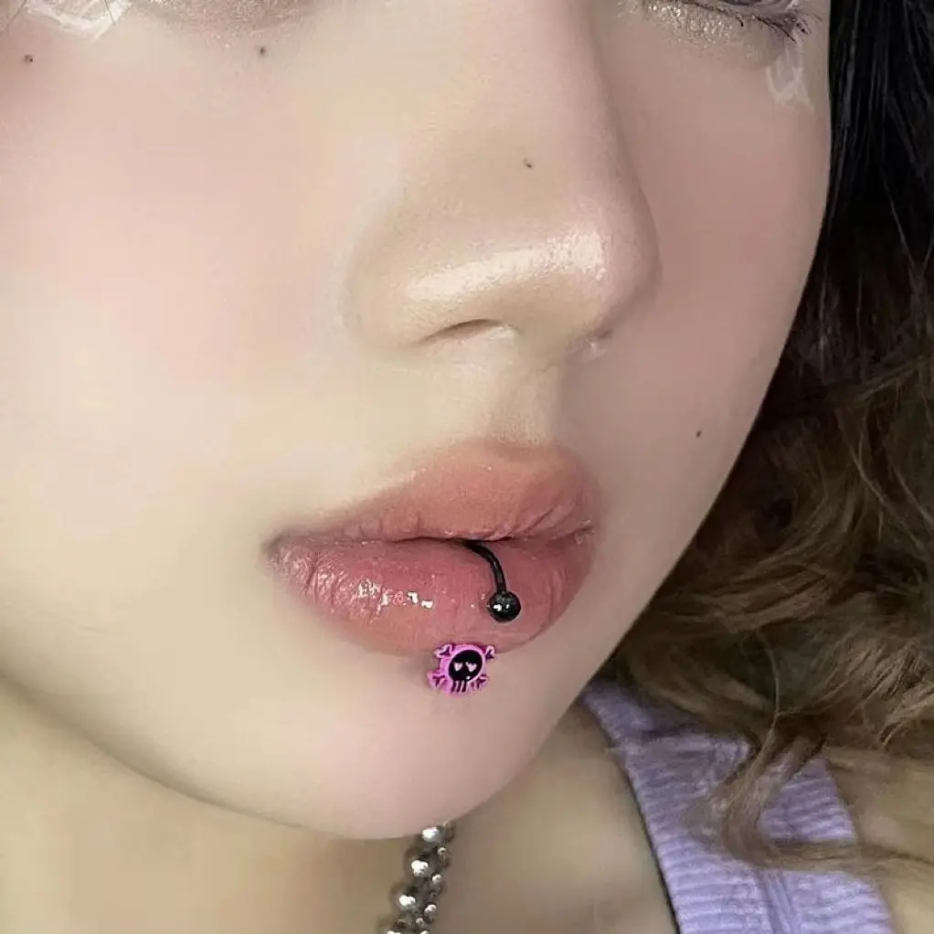 Lunivop 1pc Y2K Pink Skull Lip Ring Stainless Steel C Shape Black Color Labret Piercing Sweet Cool Girl Cartilage Body Jewerly Gifts