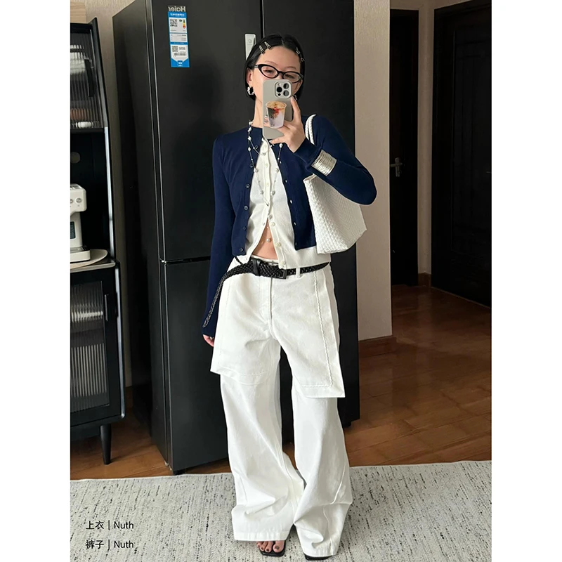 Lunivop Bottoms Chic Fake Y2k Jeans Streetwear Vintage Flare Pants for Women Casual High Waist Denim Trousers Pantalon Femme
