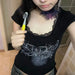 Lunivop New Fangyuan Collar Print Lace Splicing Retro Millennium Y2K Spice Girls Short Sleeve Shirt Slim Summer Half Sleeve Top