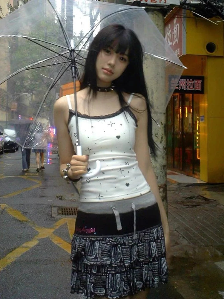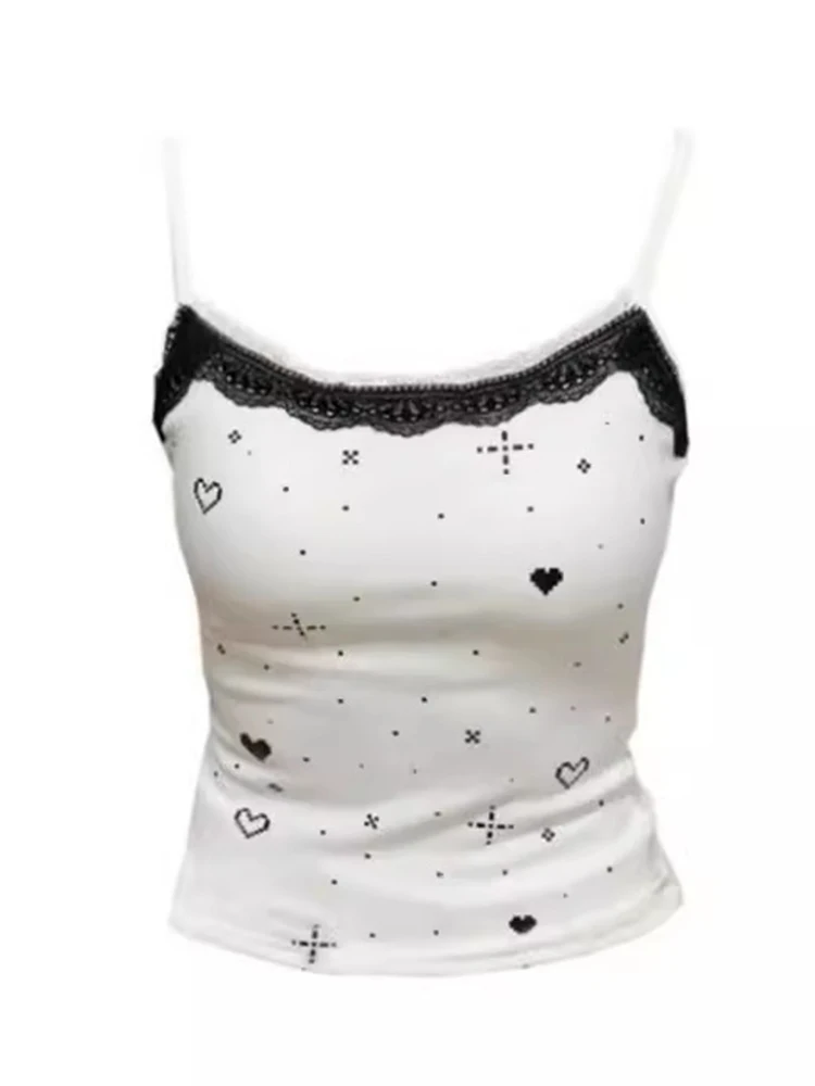 Lunivop New Summer Women's Dress Punk Y2K Printed Love Mosaic Lace Small Vest Slim Short Fashion Millennium Harajuku Style Clothe