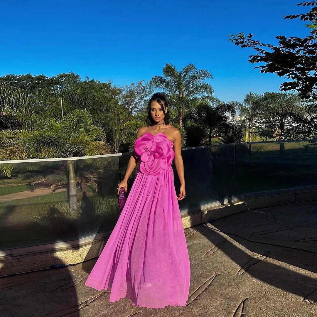 Lunivop Bubblegum Summer New Women's Sexy Strapless Flower Draped Bandage Dress Floor Length Elegant Sheer Tulle Party Club Vestidos