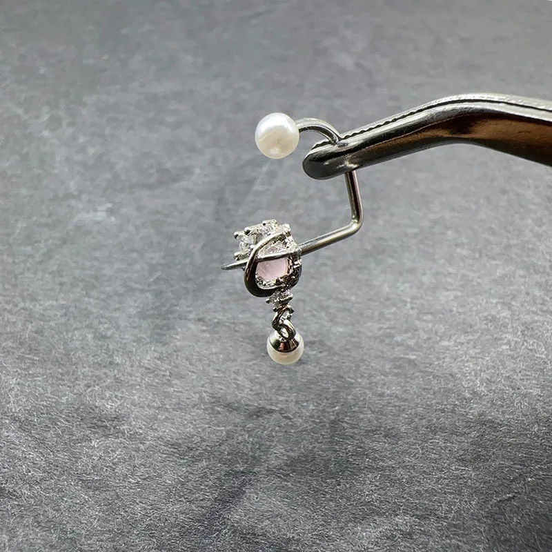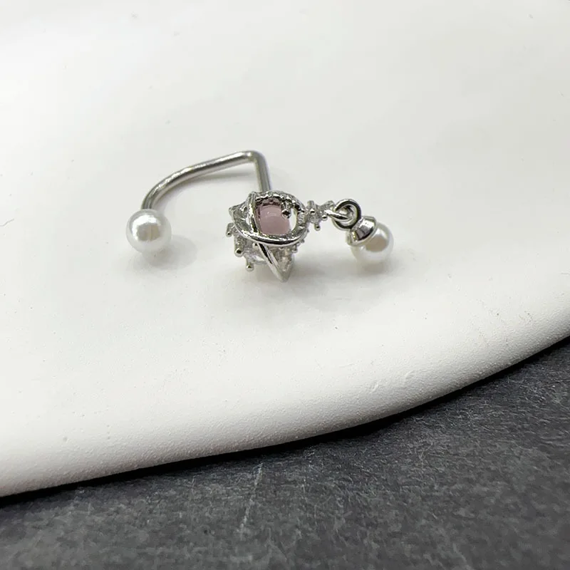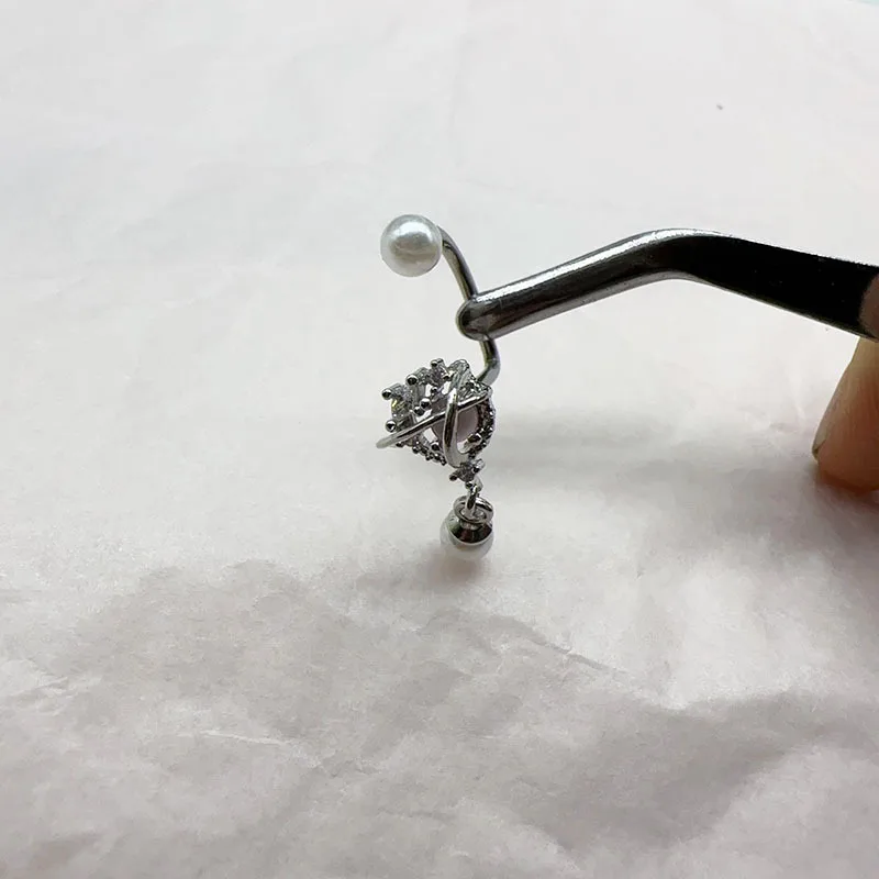 Lunivop D Ring Planet Pearl Labrets Piercing Chain Pendant Cute Opal Diamond Zircon Lip Ring Titanium Steel Piercing Jewelry