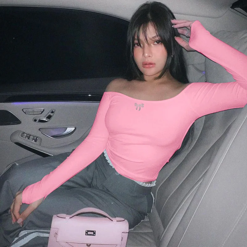 Lunivop Europe and the United States ins style women's early autumn new sexy line lead spice girl pure wind slim-fit heart machine halte