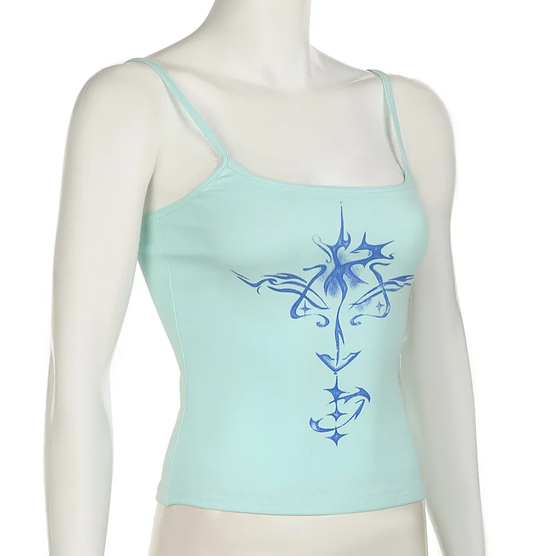 Lunivop Fashion Sexy Retro Abstract Print Tight Fit Camisole Top 2000s Y2k Style Print Tank Tops Sleeveles Gothic Punk Tank Crop Top