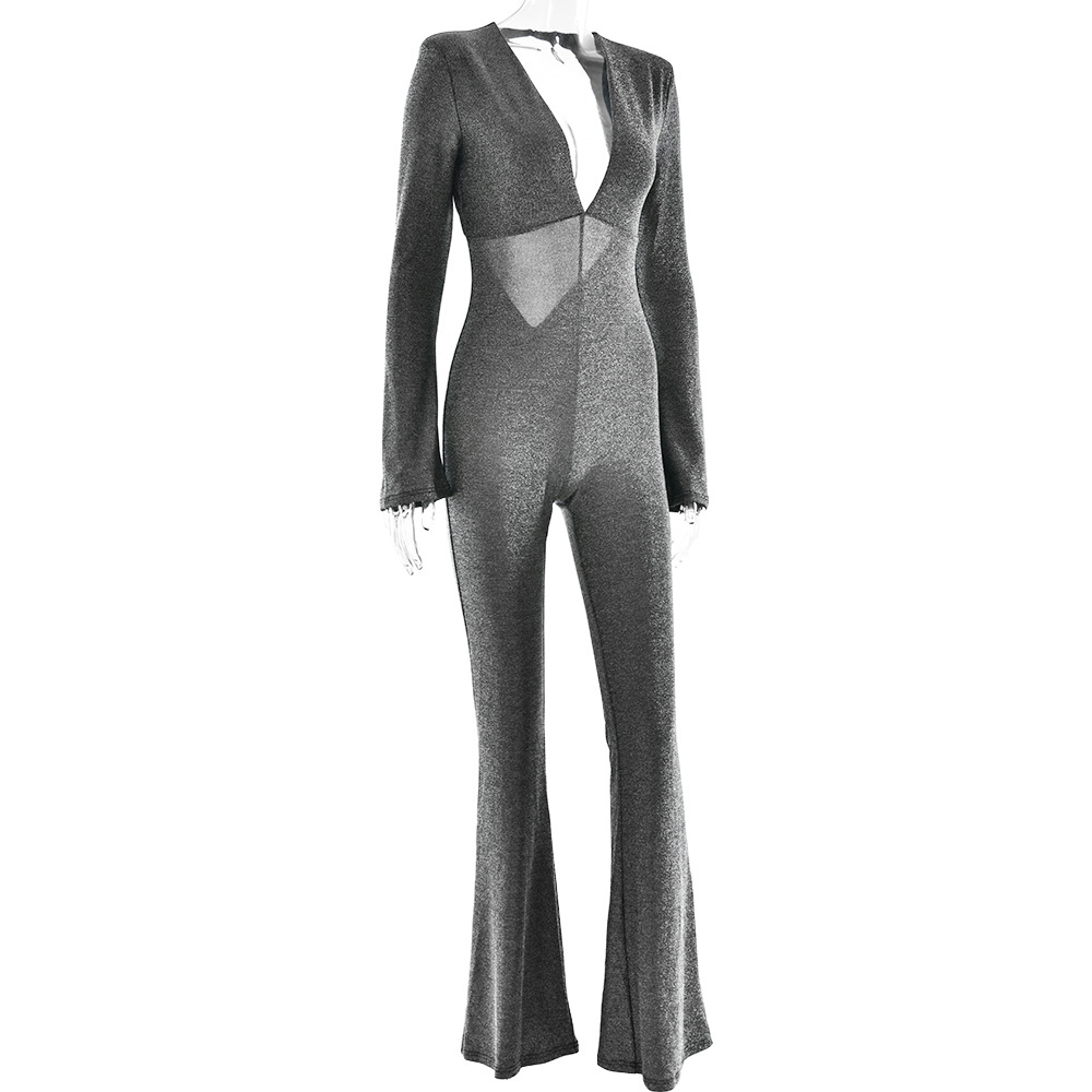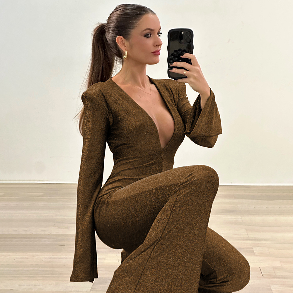 Lunivop Deep V Neck Long Sleeve Backless Flare Jumpsuit Elegant Sexy Party One Piece Rompers Outfits Fashion Women Y2K Clothing