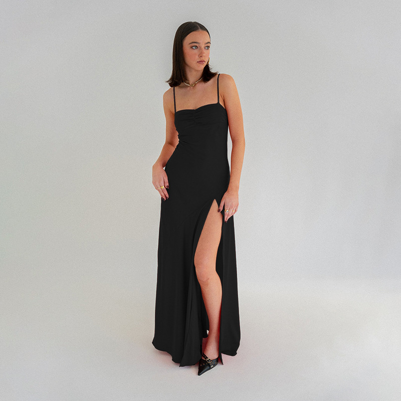 Lunivop Elegant Satin Yellow Dresses For Women Party Spaghetti Strap Backless Split Long Maxi Dress Women Summer