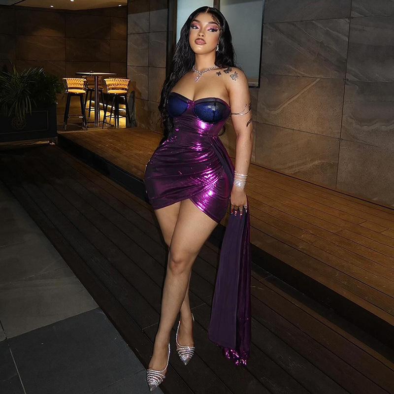 Lunivop Sexy Purple Bodycon Dresses For Women 2025 Party Night Clubwear Outfits Strapless Backless Draped Mini Dress