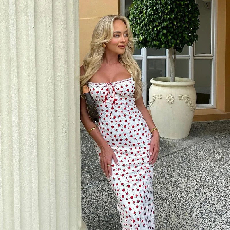 Lunivop hirigin Ruffled Backless Halter Dresses Female Lace Elegant High Waist Spaghetti Patchwork Party Dress Summer Women Maxi Dress