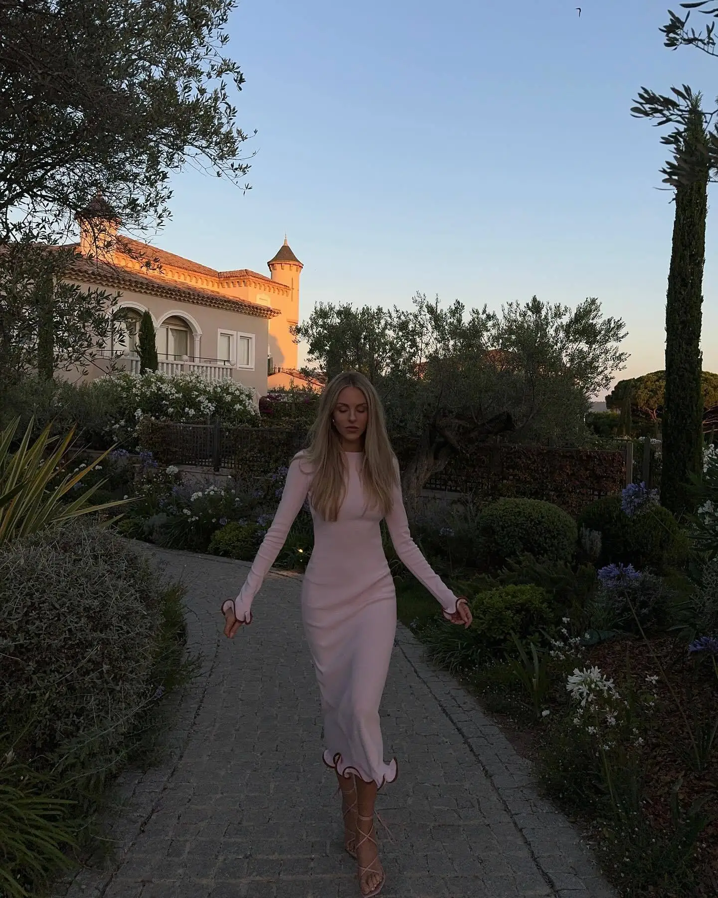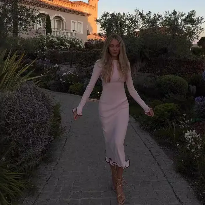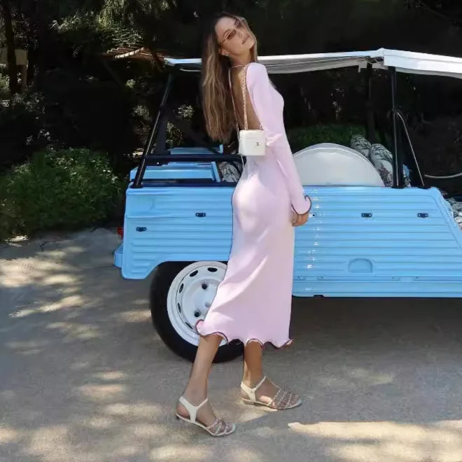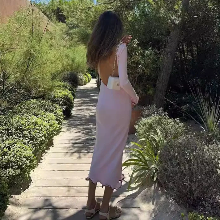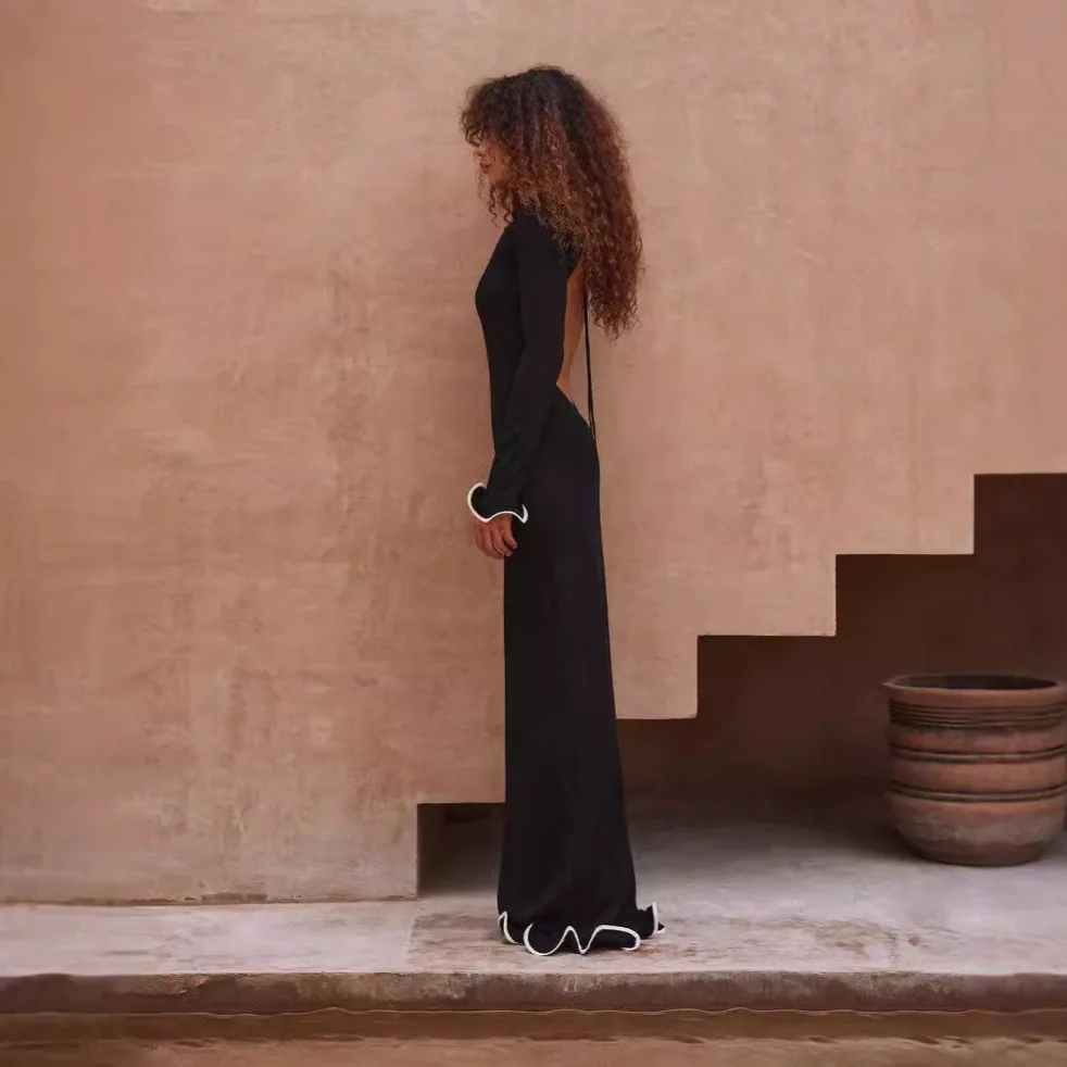 Lunivop Knitted Sexy Backless Ruffles Maxi Dress For Women Long Sleeve Evening Dress Female Autumn Skinny Elegant Party Clubwear