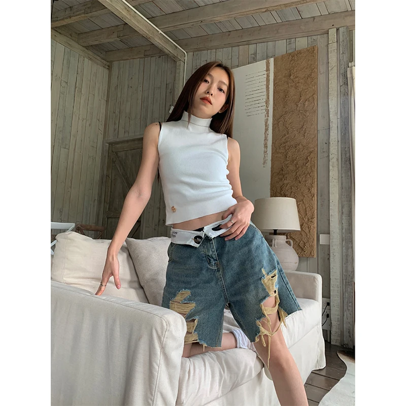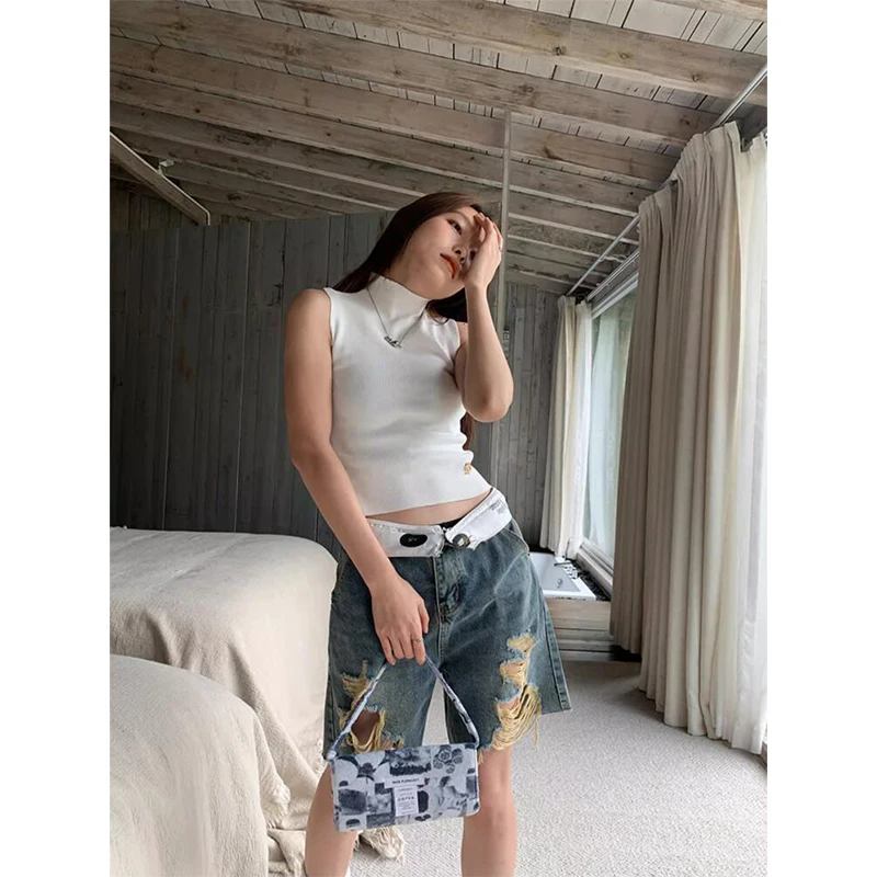Lunivop Korean Y2K Harajuku High Waist Streetwear Style Fashion Shorts 2024 Summer Women's Sexy Ripped Trashy Loose Fit Denim Shorts