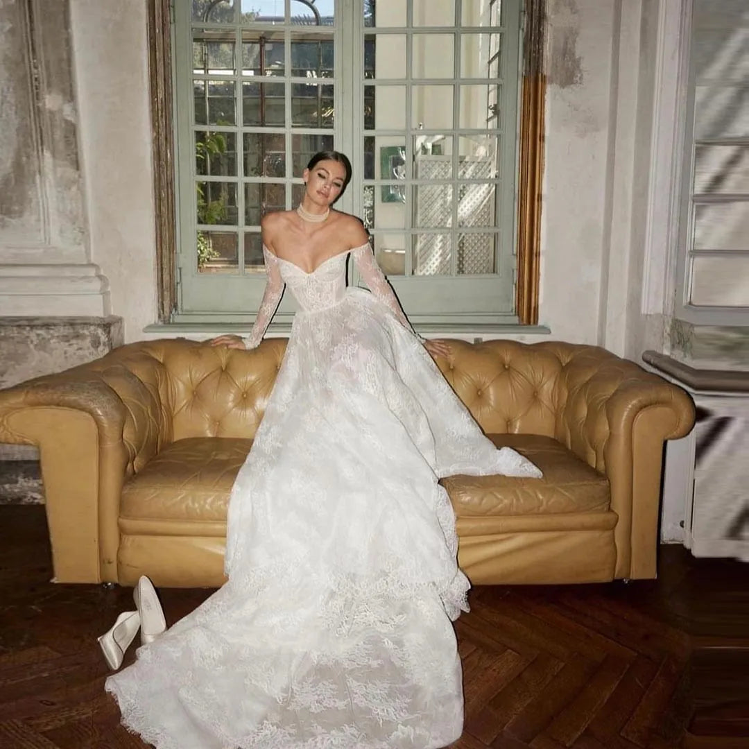 Lunivop Lace Wedding Dress Vestido De Novia Manga Larga Sencillo y Elegante Vestidos Para Por La Iglesia Boda Noivas Robe Mariee