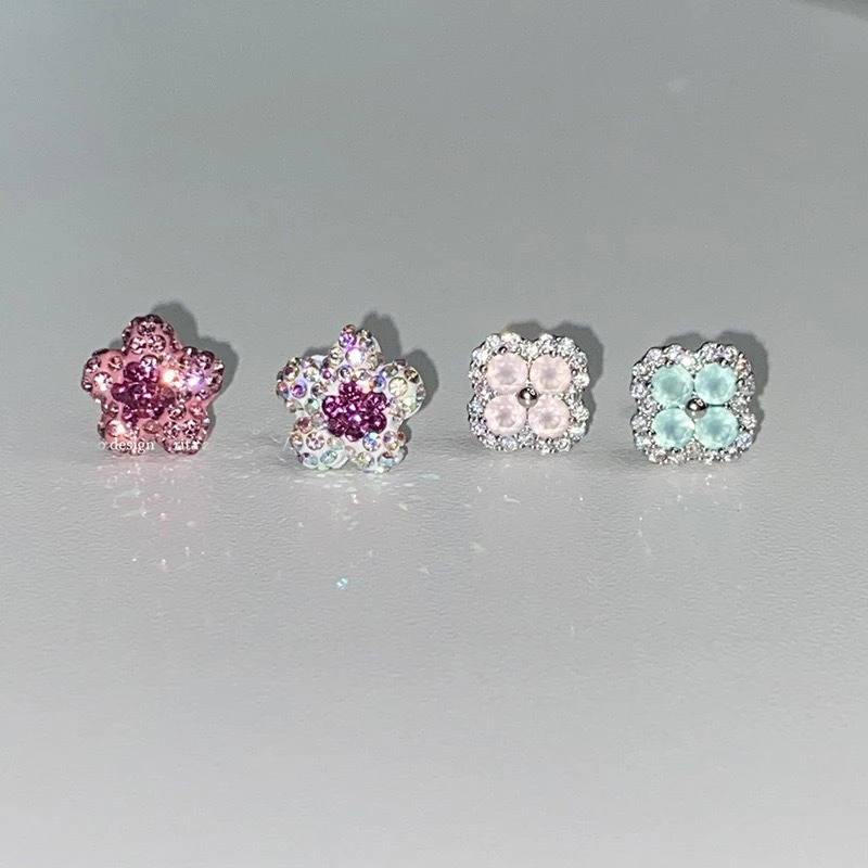 Lunivop 1 PCS New Fashion Four Leaf Clover Zircon Crystal Ear Bone Nail 316L Medical Titanium Steel Earrings for Women Y2K Cute Jewelry