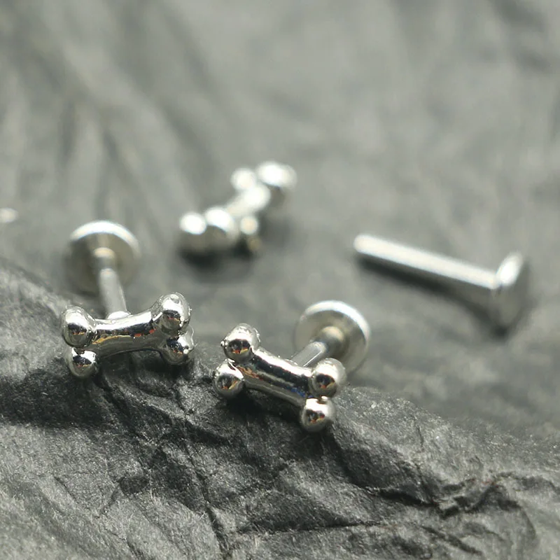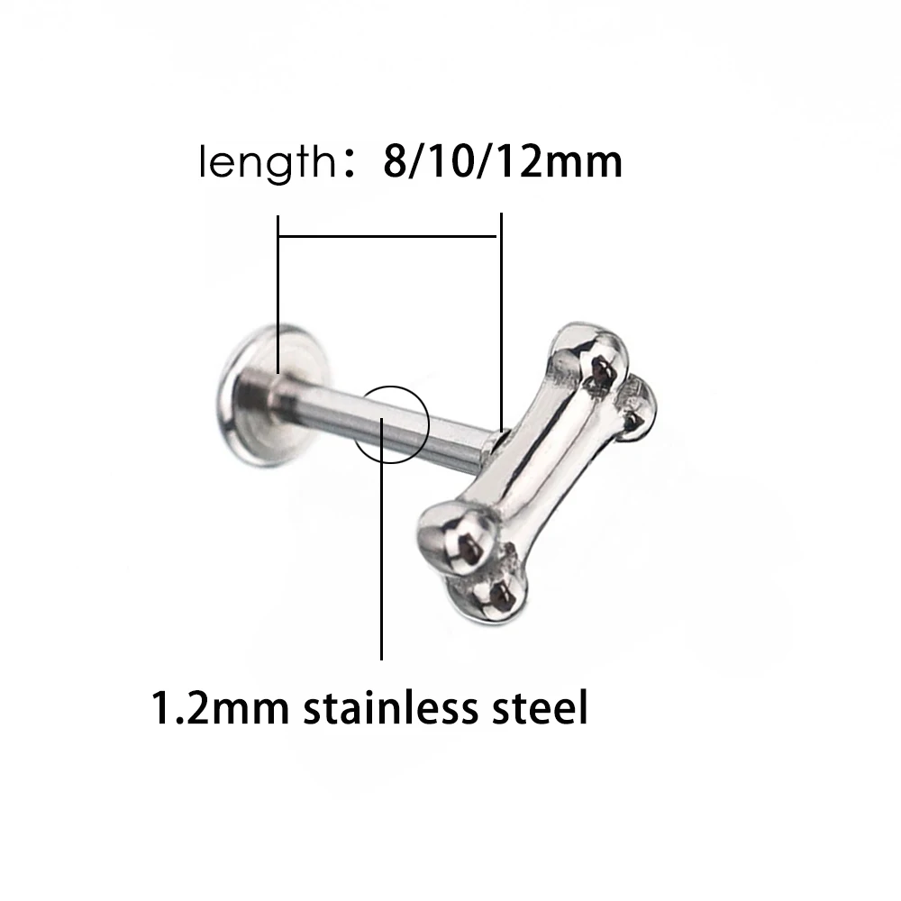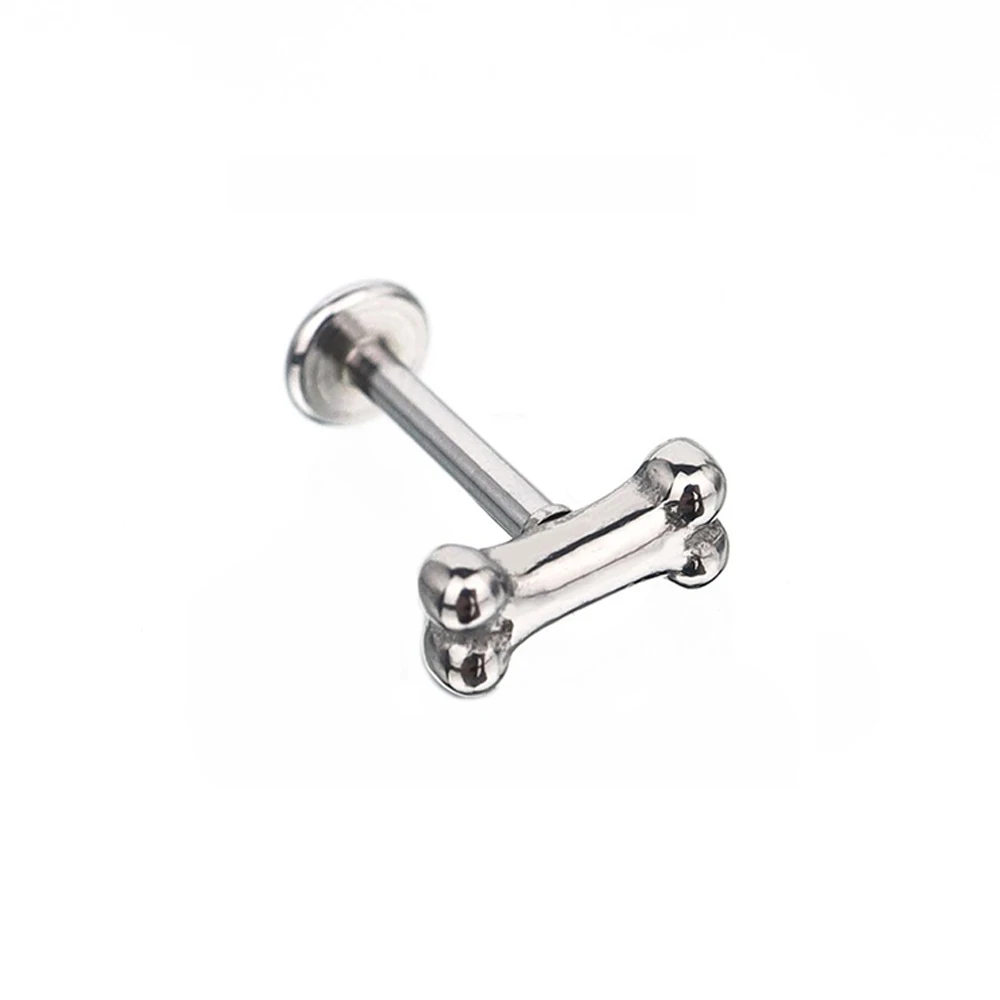 Lunivop 1pc Bone Shape Stainless Steel Lip Stud Fashion Simple Silver Color Labret Piercing Cartilage Earring Daith Tragus Body Jewelry