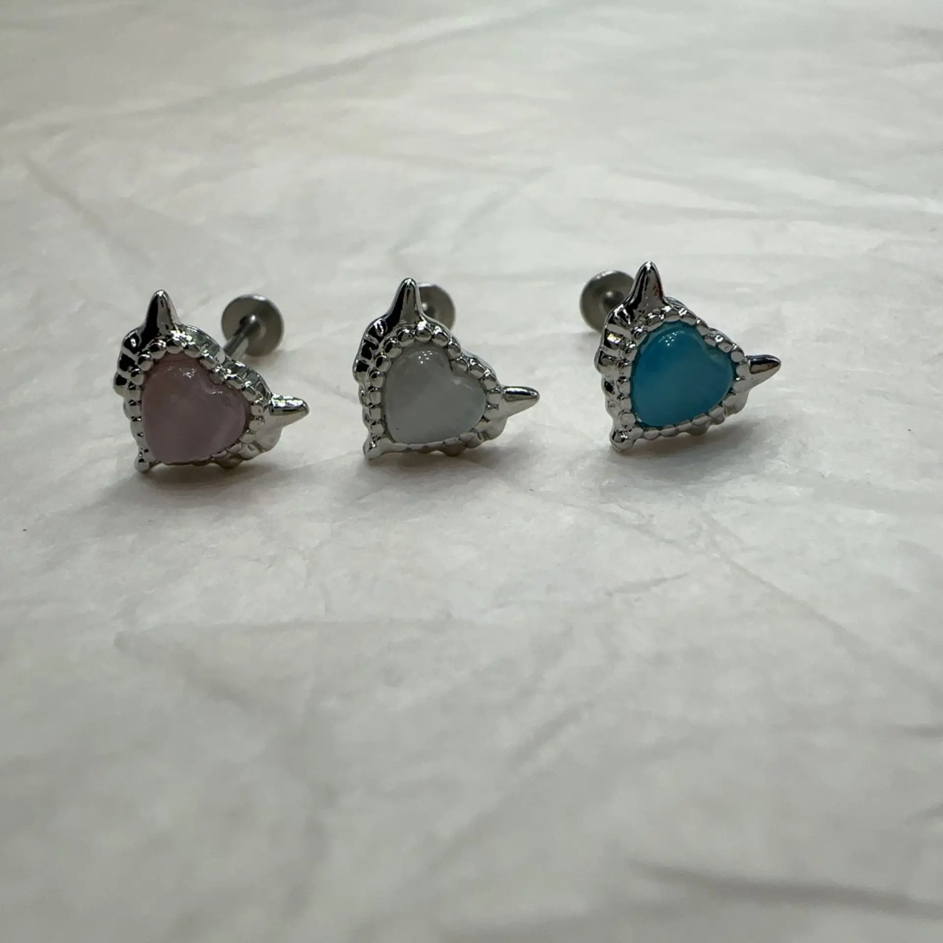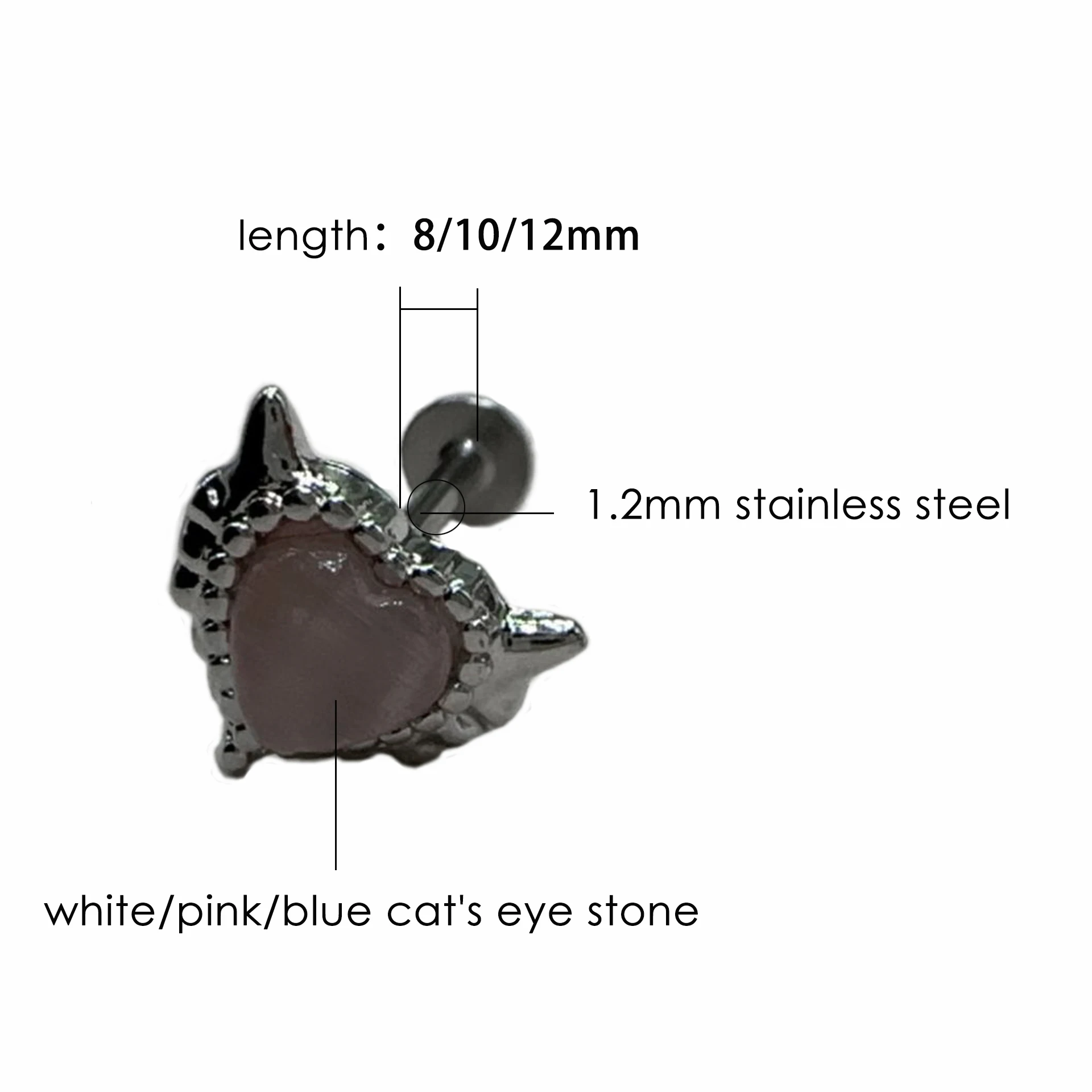 Lunivop 1pc Love Heart Lip Stud Blue Cat's Eye Stone Ins Fashion Stainless Steel Labret Piercing Ear Bone Accessories Jewelry New Gifts