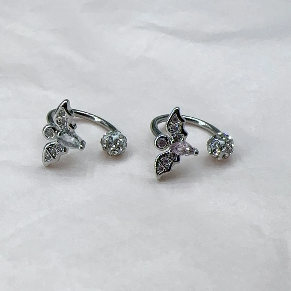 Lunivop 1pc Punk Cool Bat Lip Ring C-shaped Stainless Steel Zircon Labret Piercing Lip Ring Cartilage Fashion Body Jewelry Gifts