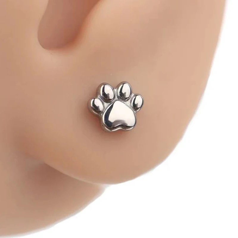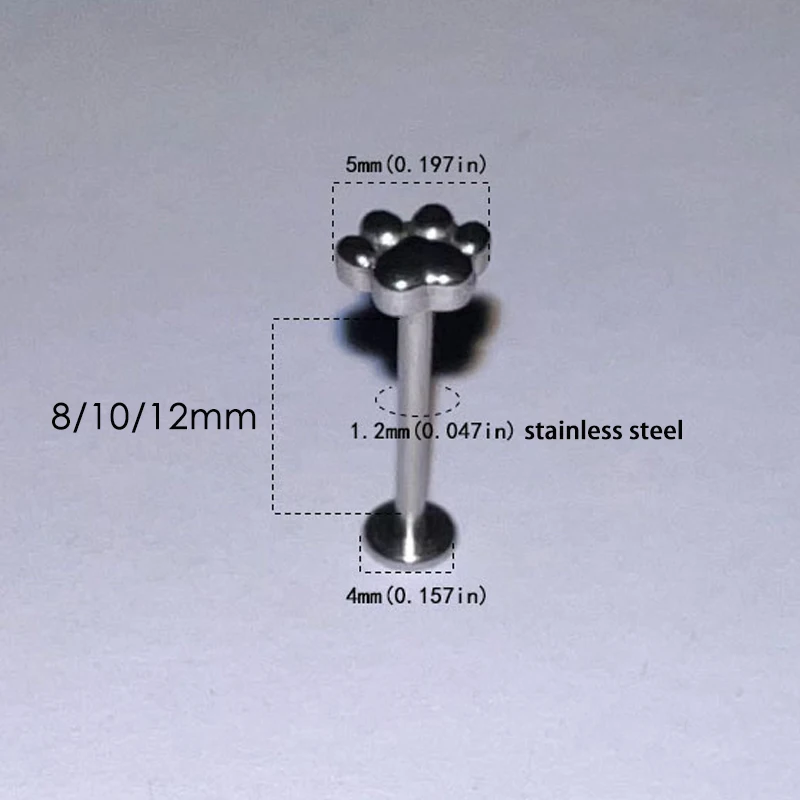Lunivop 1pc Sweet Cute Bear Paw Lip Stud Stainless Steel Simple Labret Piercing Silver Color Cartilage Ins Fashon Body Jewelry Gifts
