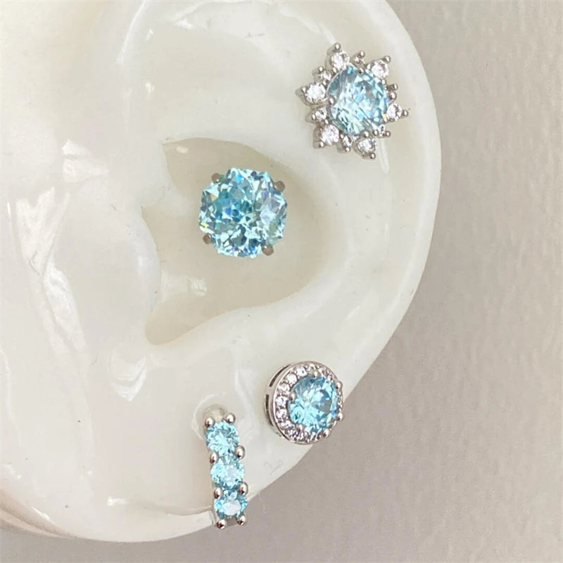 Lunivop 1PCS Shiny Blue Zircon Stainless Steel Ear Bone Nail Full of Rhinestone Screws Earrings for Women Cochlea Piercing Body Jewelry