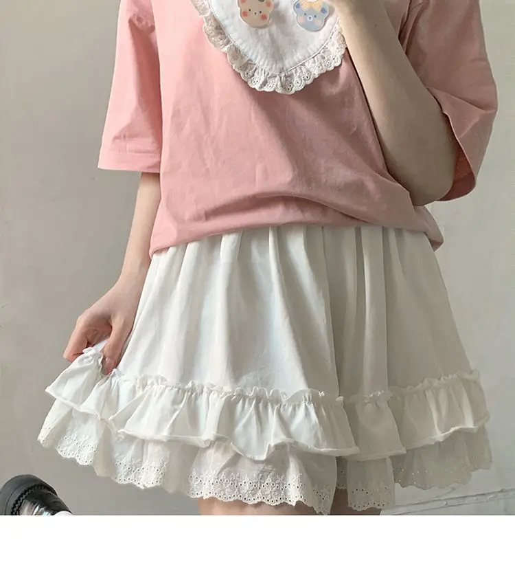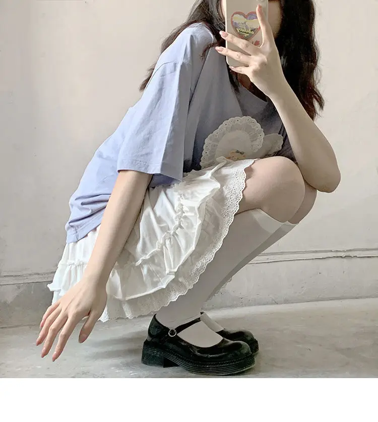 Lunivop 2024 Korean Fashion White Lace Mini Skirt for Women Girl A-line Short Skirt Kawaii Cute Preppy Style Student High Waist Clothes