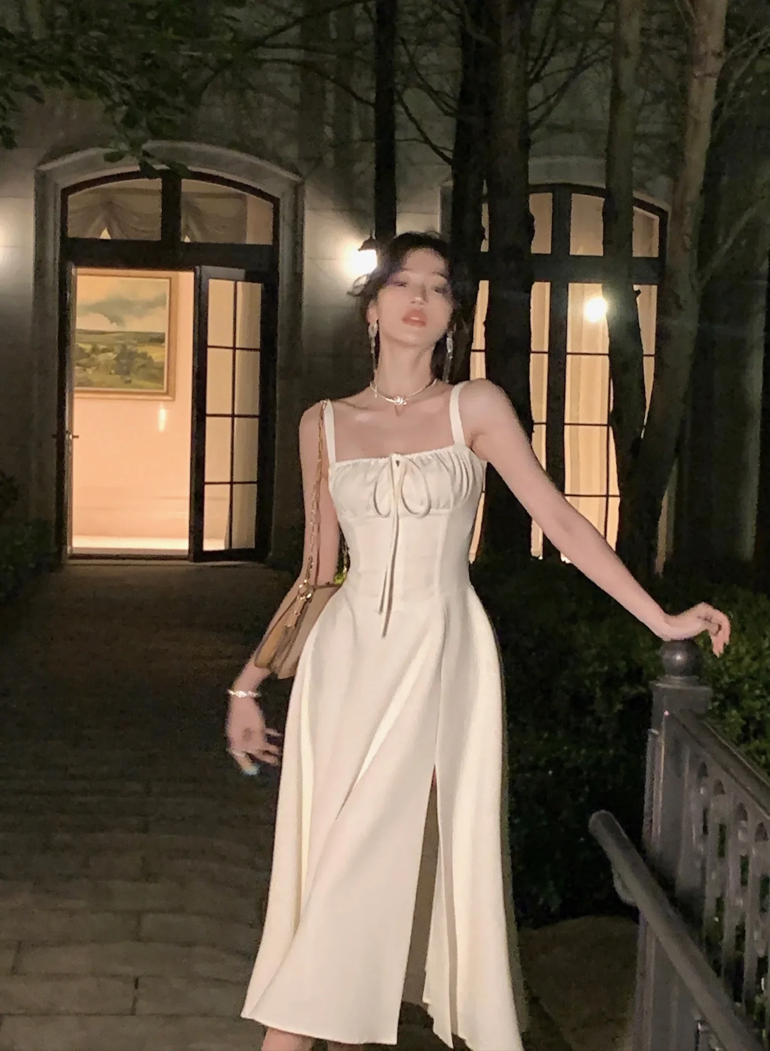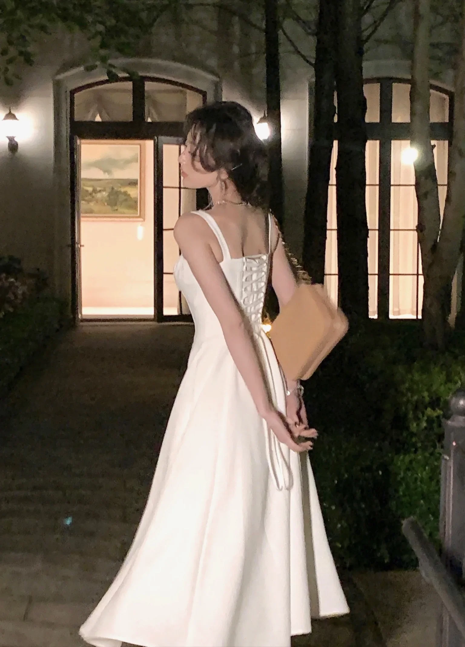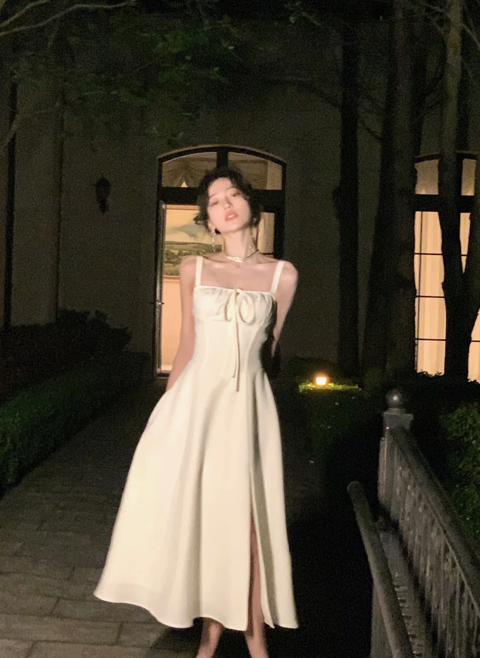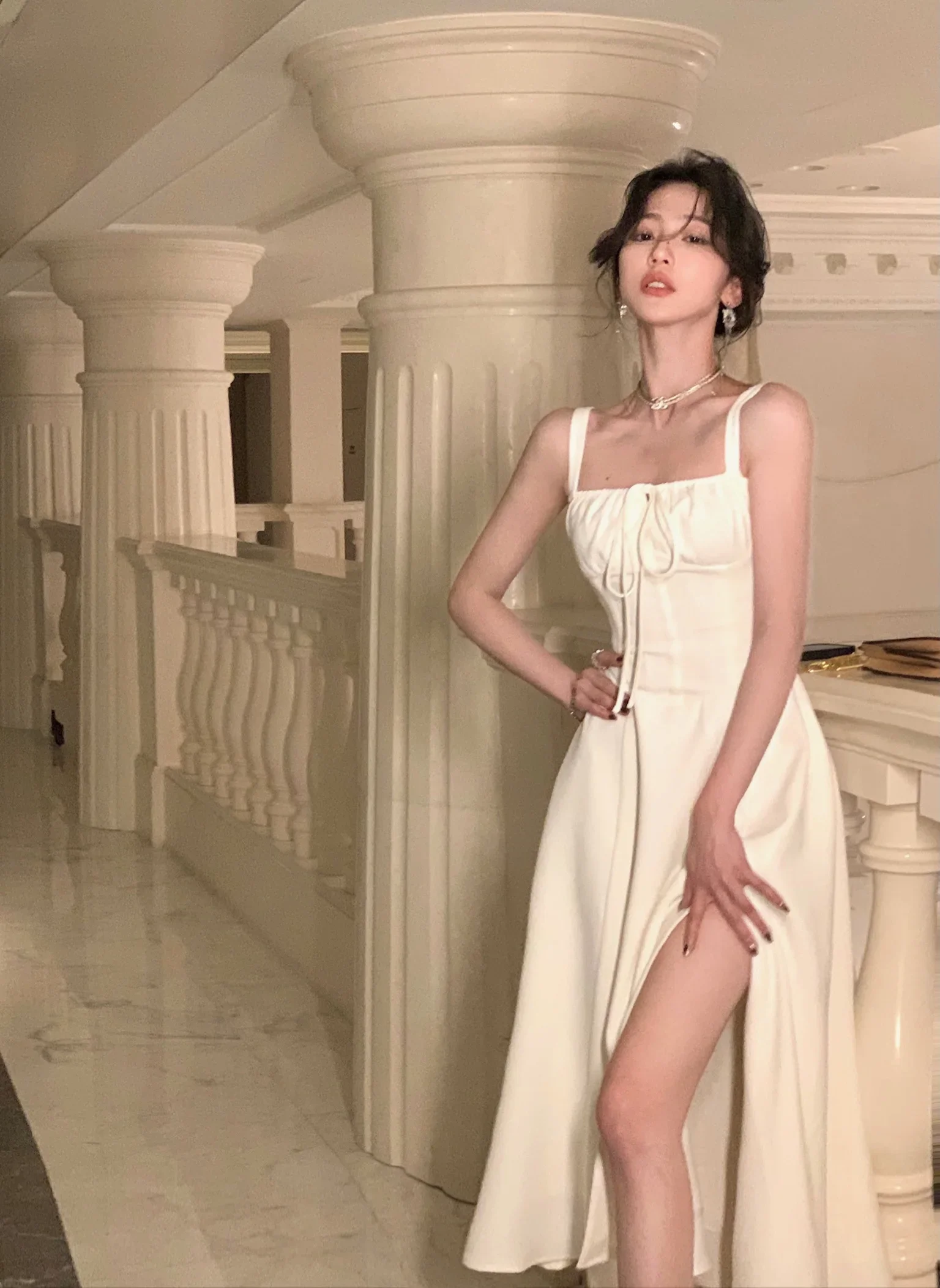 Lunivop 2024 New White Vintage Split Slip Dress Sleeveless A-line Elegant Bohemian Sexy Fishbone Bandage Dresses Female Summer Backless