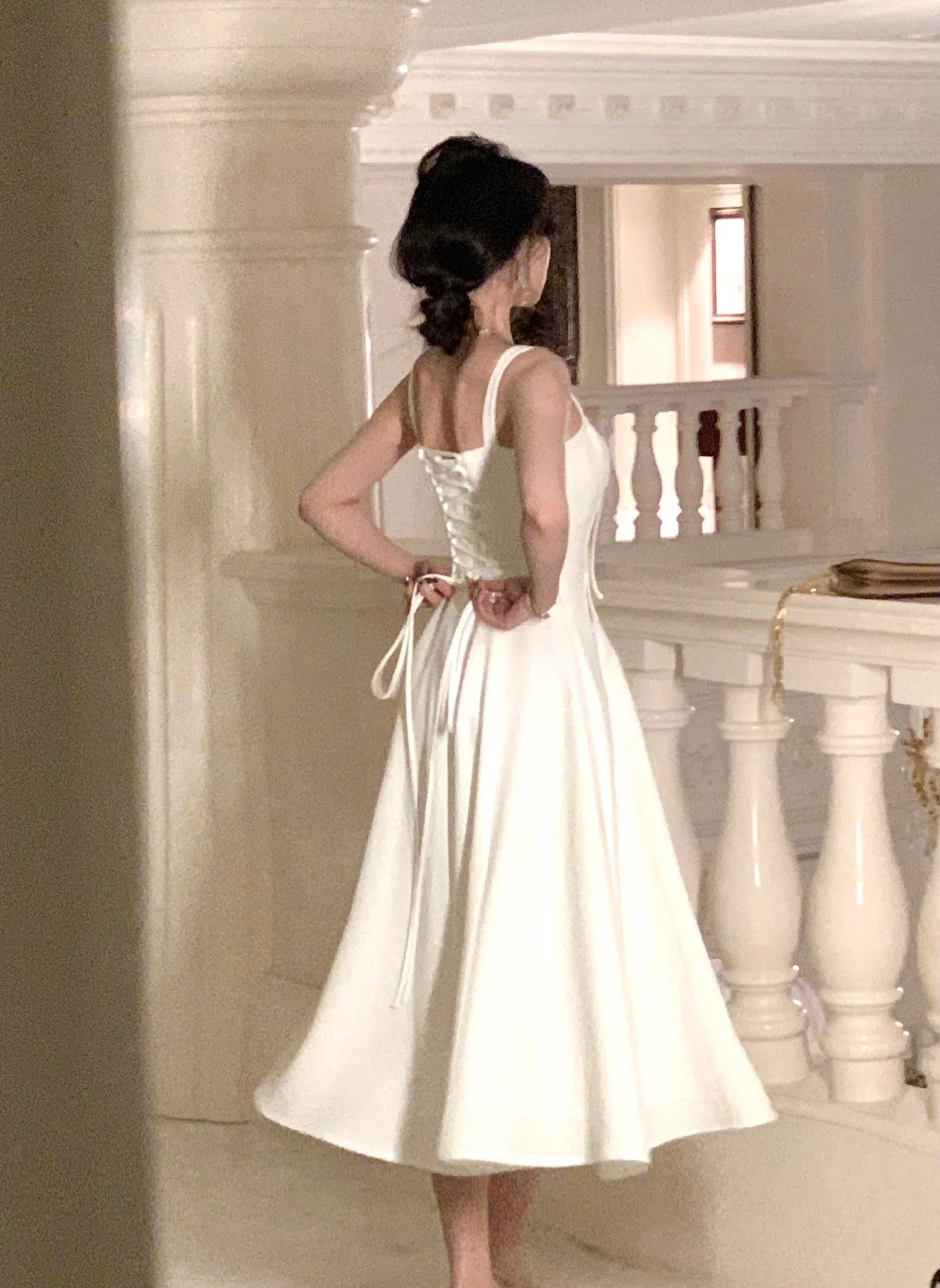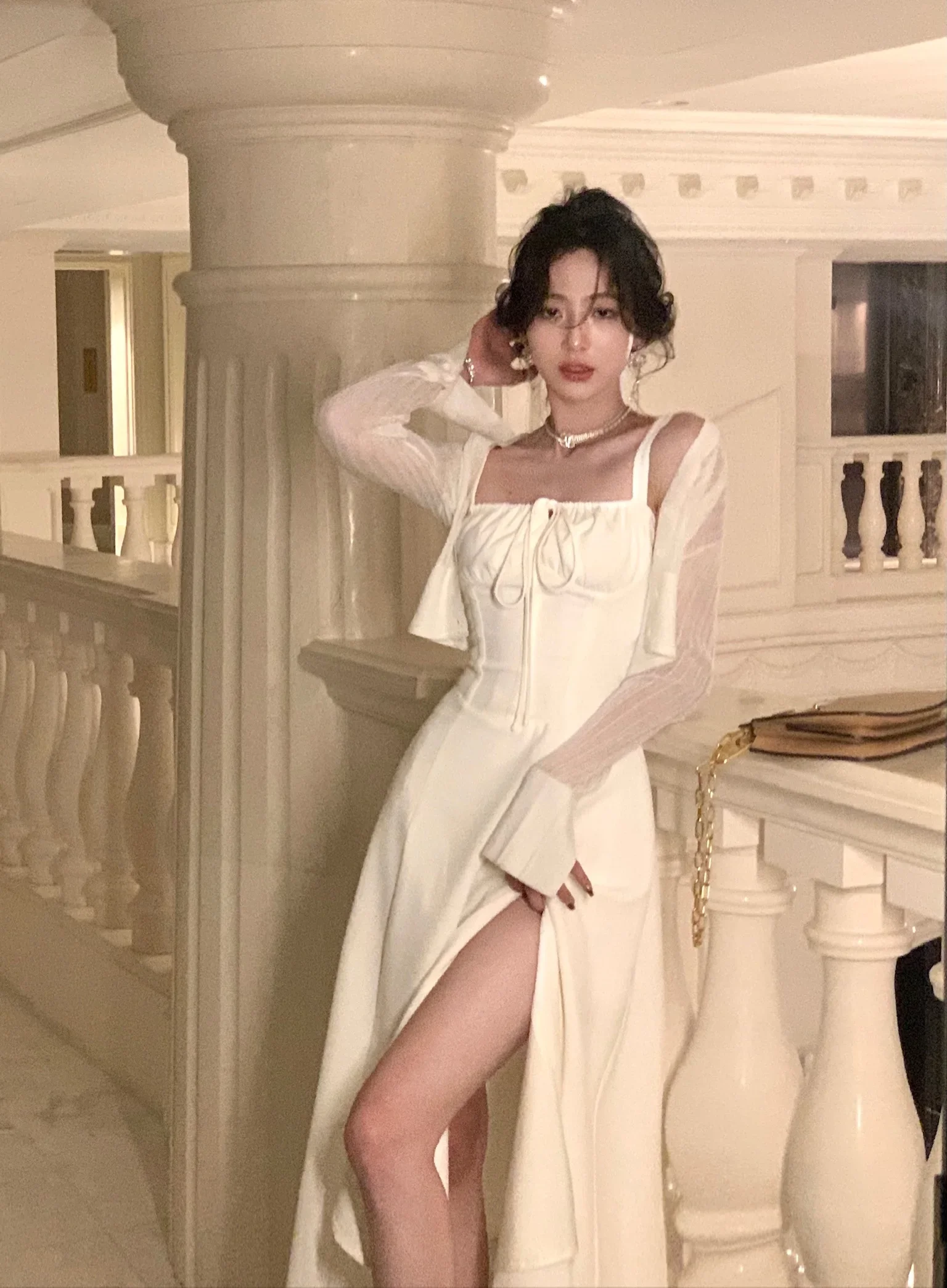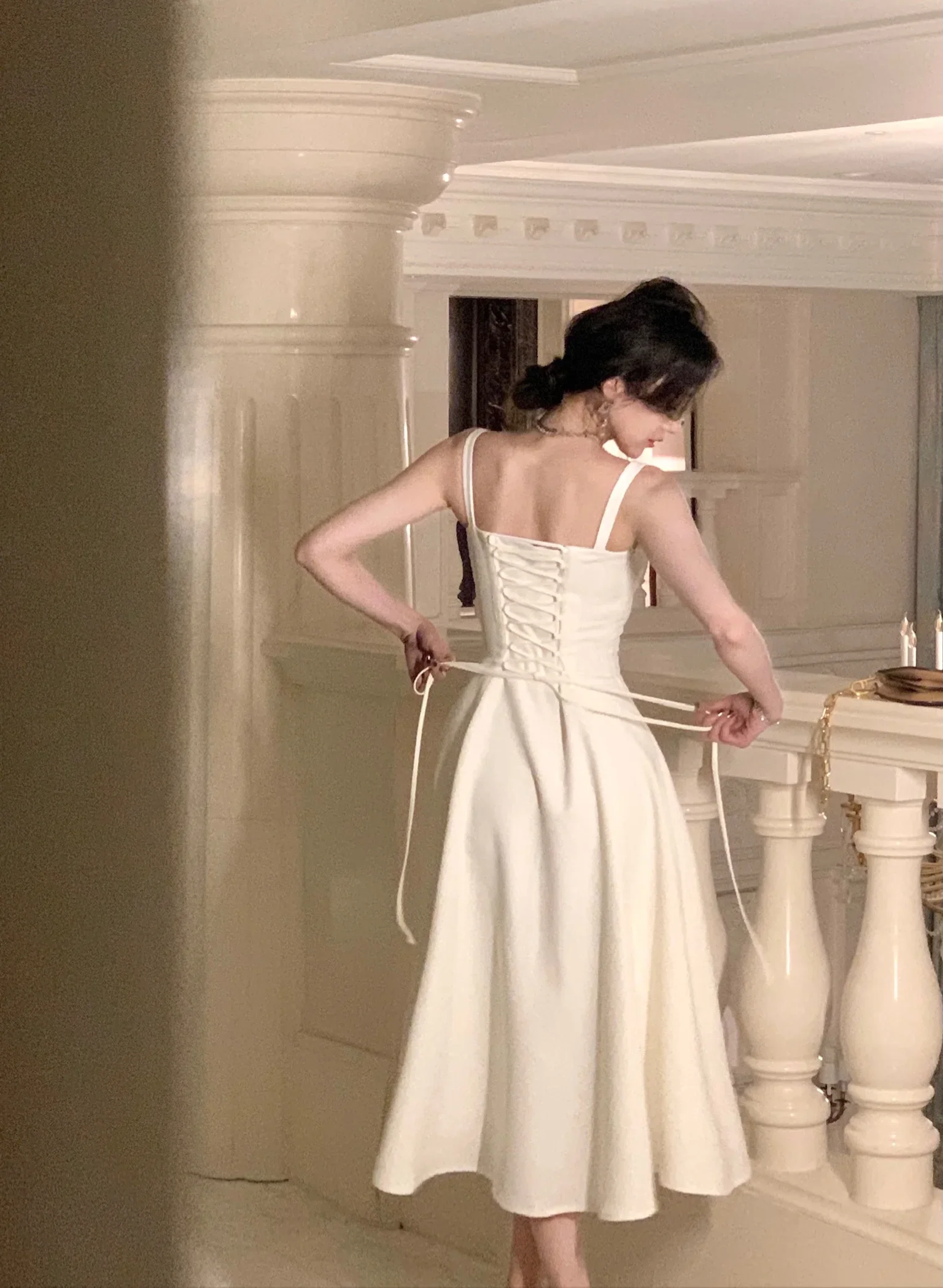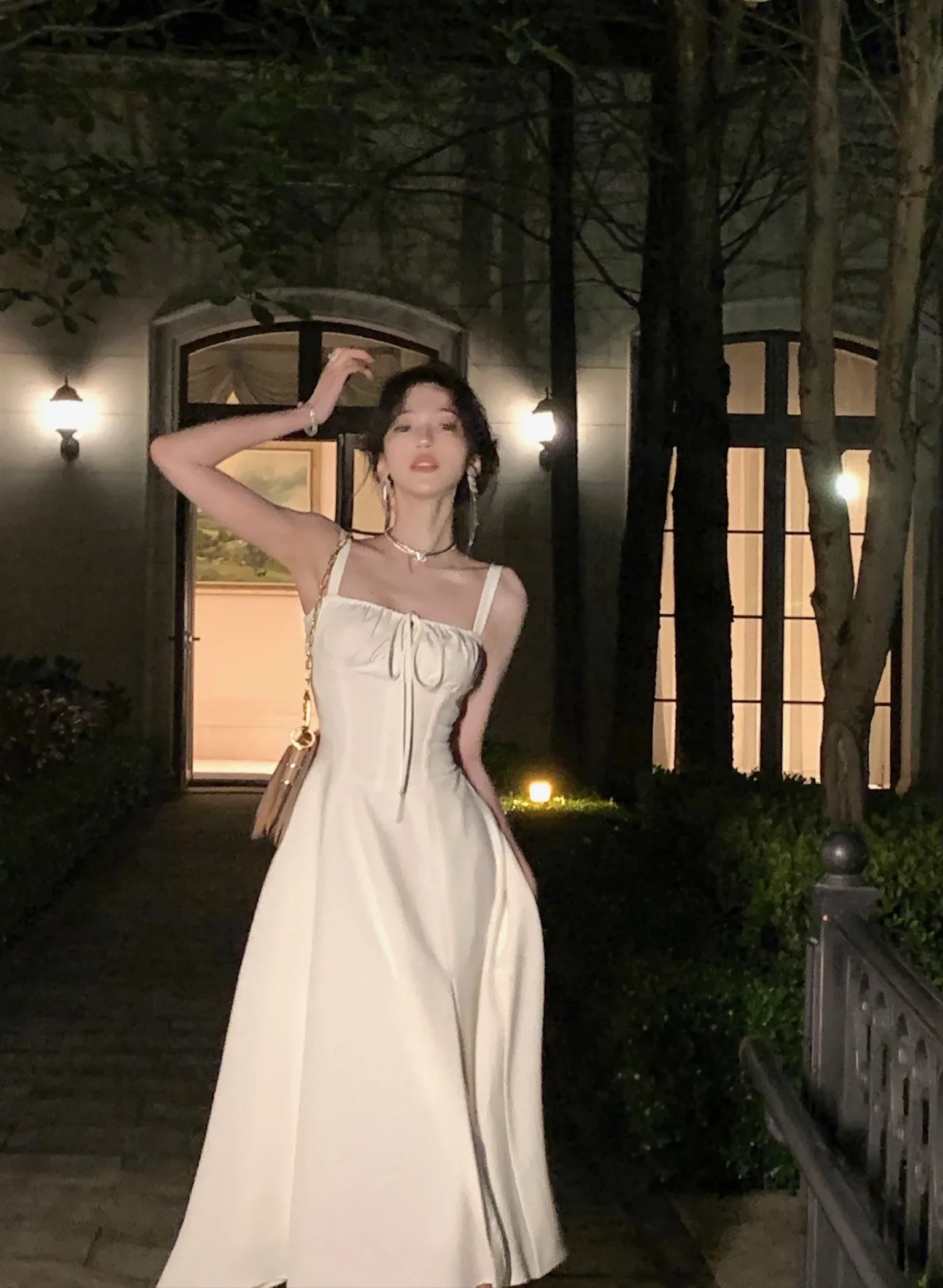 Lunivop 2024 New White Vintage Split Slip Dress Sleeveless A-line Elegant Bohemian Sexy Fishbone Bandage Dresses Female Summer Backless