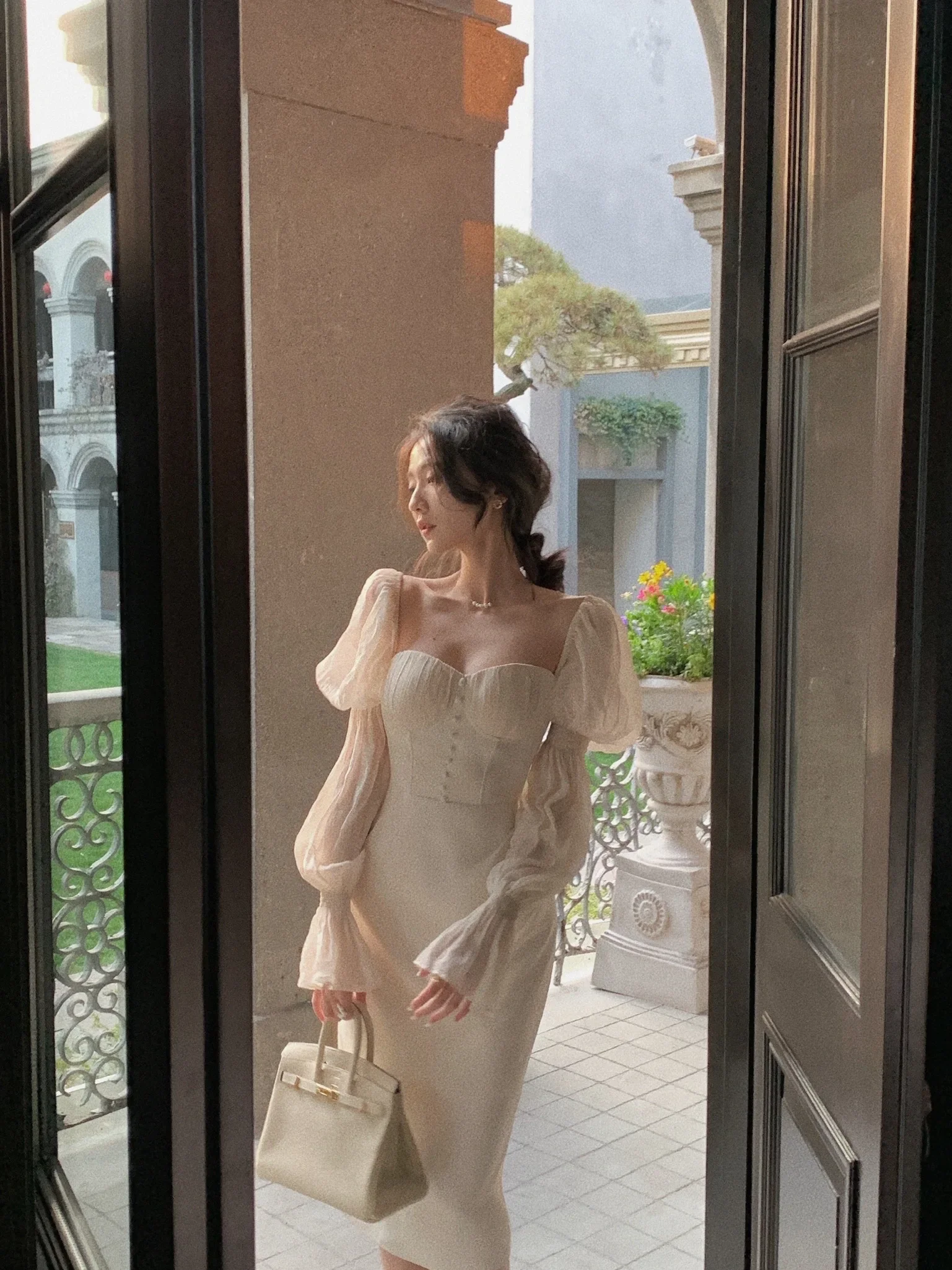 Lunivop 2024 Spring/Summer Fashion Retro Women Elegant Puff-Sleeve Midi Corset Dresses Evening Prom Female Party Lady Clothes Vestdios