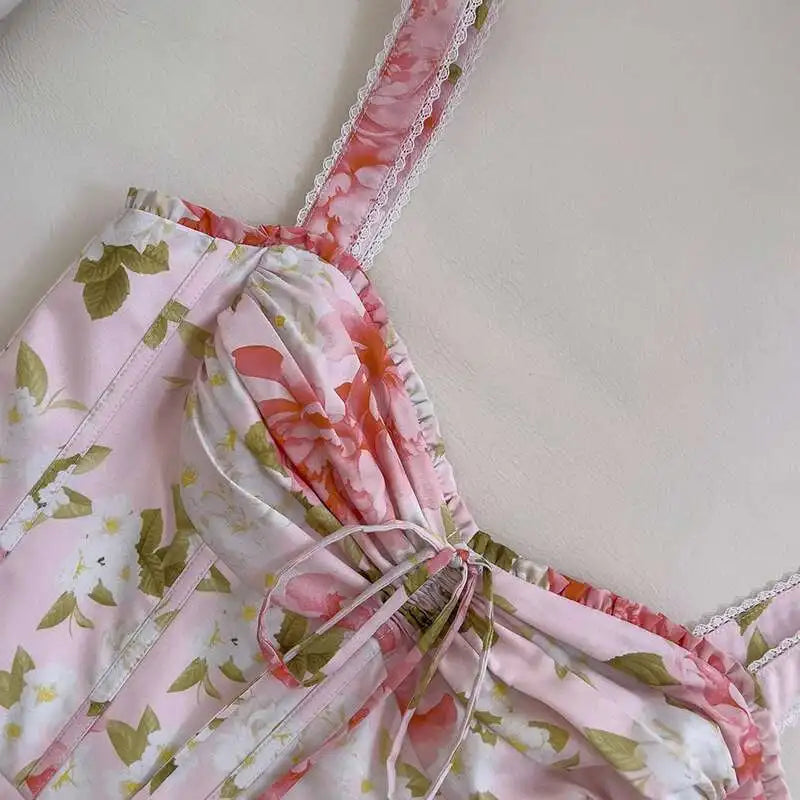 Lunivop 2025 Spring And Summer New Floral Lace Trim Sweet Women Dress Corset Style Sleeveless Elegant Dresses Female