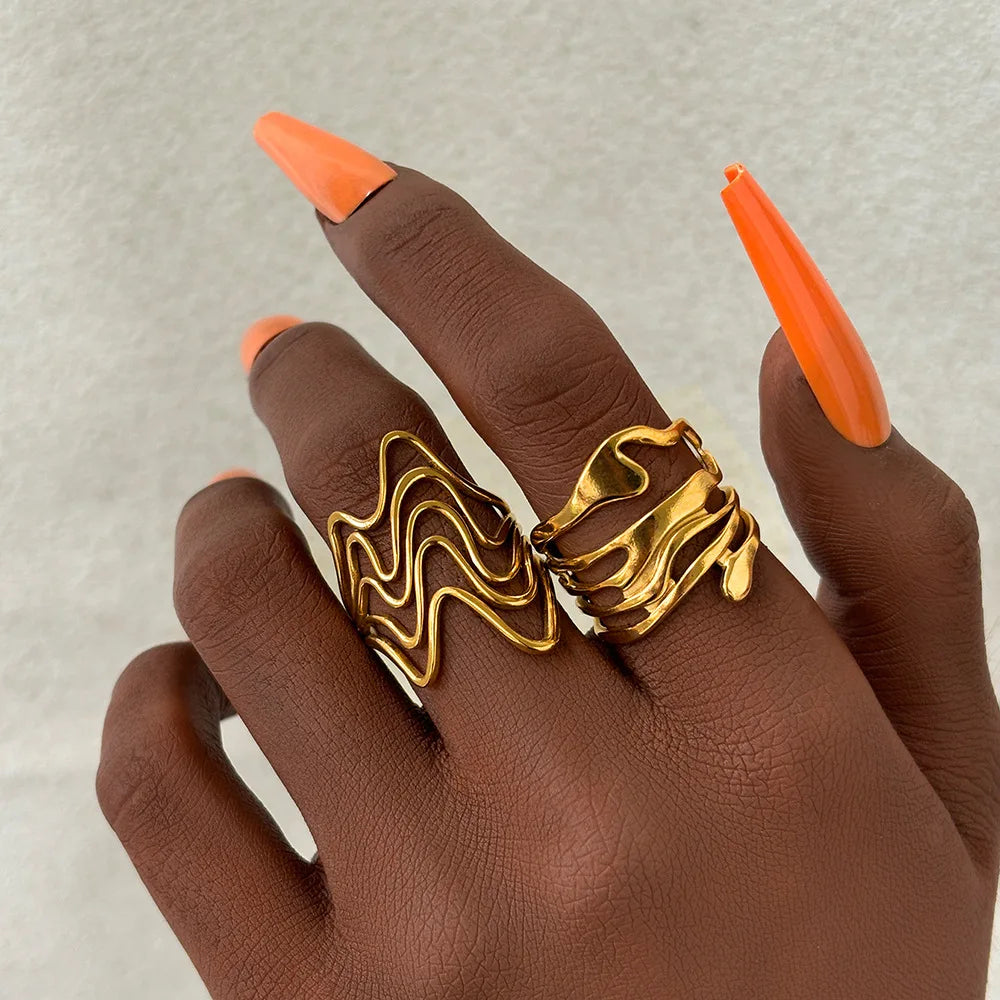 Lunivop 2pcs/set New Trendy Minimally Irregular Lava Ring Set for Women Stainless Steel Open Adjustable Rings Party Jewelry Gift