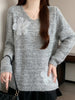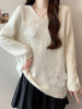 Lunivop 3D Floral Sweet Sweaters Women Loose Fashion V Neck Elegant Knitted Jumper Casual Chic Korean Female Fall Winter Long Sleeve Top