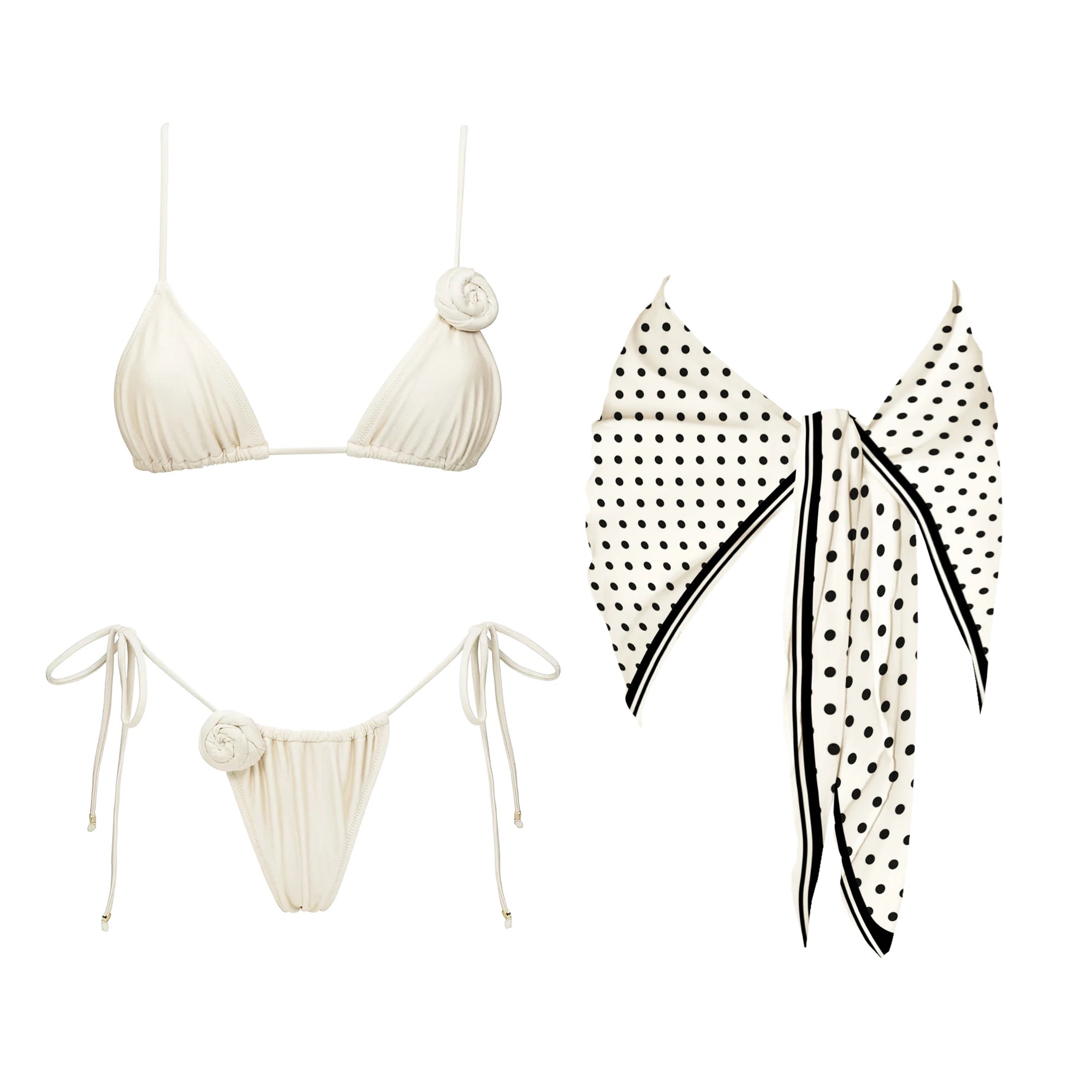 Lunivop 3Pcs Dot Bikini Set 2025 Bandeau Biquini Sexy Women Swimsuit Push Up Swimwear Female Flower Swim Suits Bathingsuit Beach Outfit