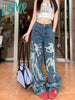 90s streetwear Personalized Printed Pattern Jeans for Women New Washed Distressed High Waist Loose All-Match Straight Trousers Fashion