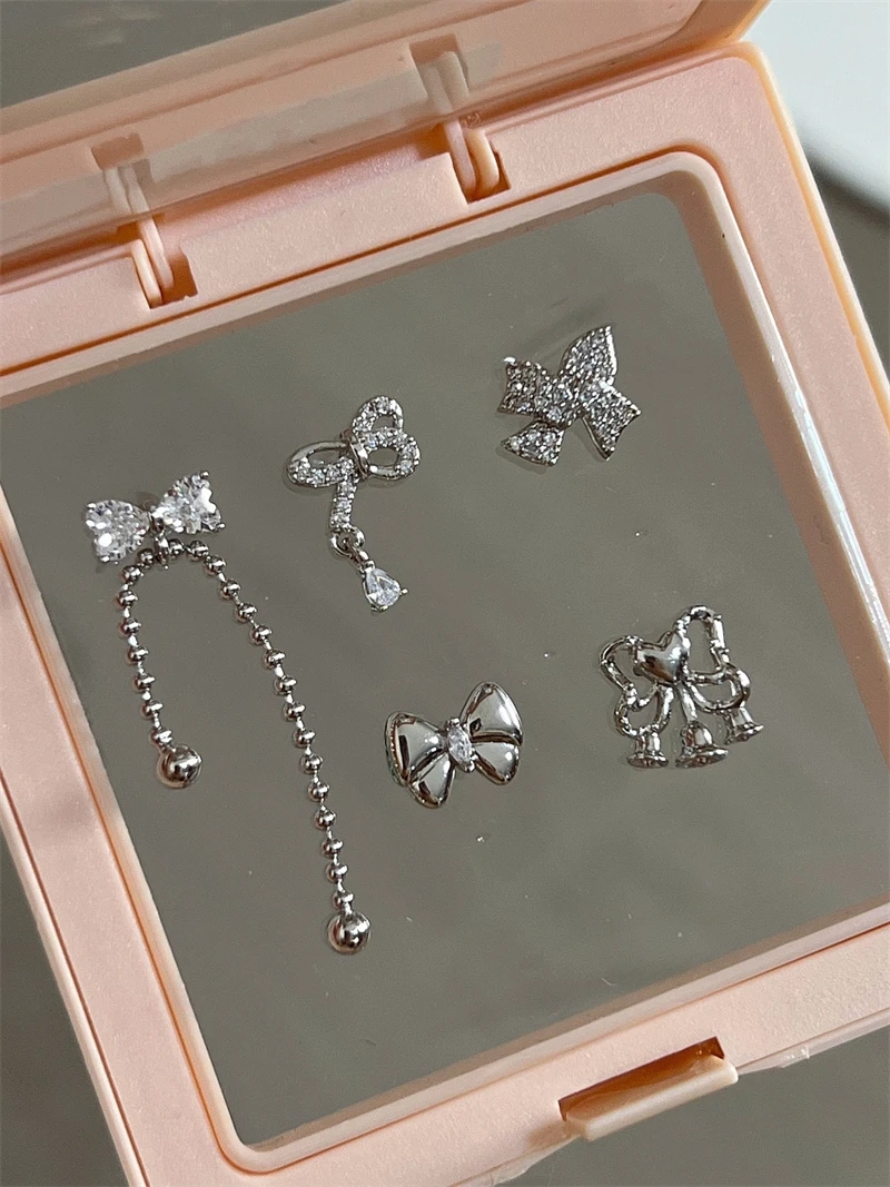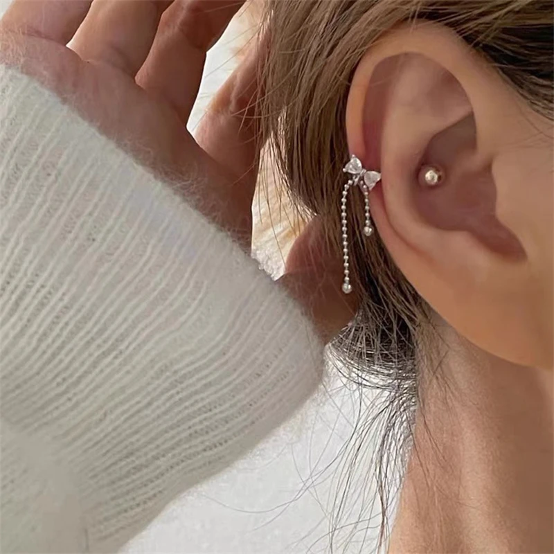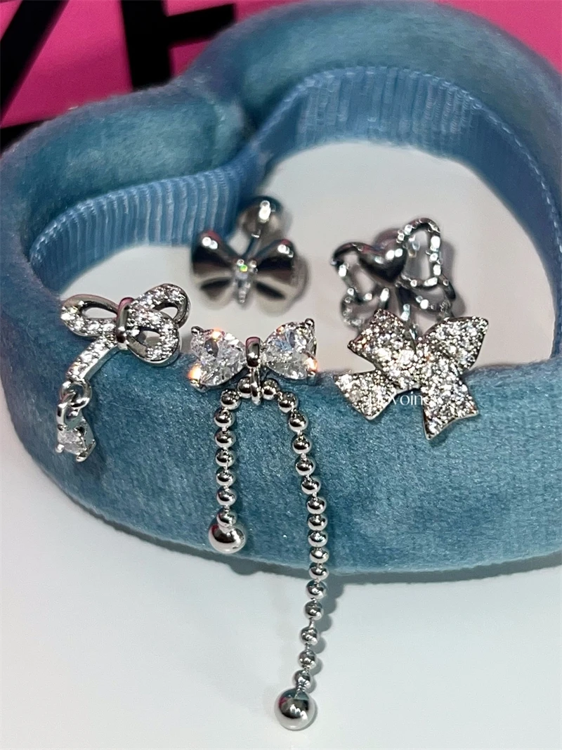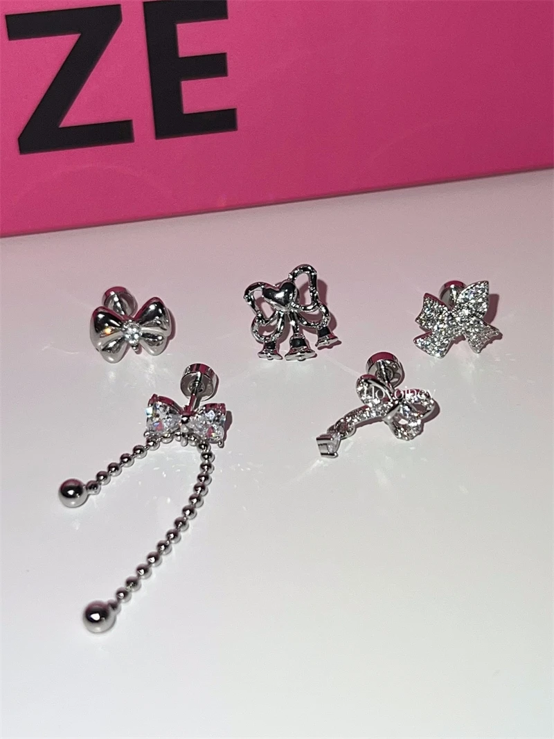 Lunivop Advanced Silver Color Bowknot 316L Stainless Steel Ear Bone Nail New Fashion Delicate Zircon Earrings for Women Y2K Punk Jewelry