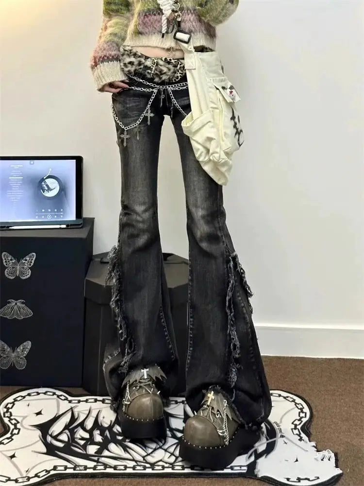 Lunivop American High Street Bell Bottom Jeans Vintage Washed Low-waist Denim Pants 2025 Summer New Loose Straight Wide Leg Pants
