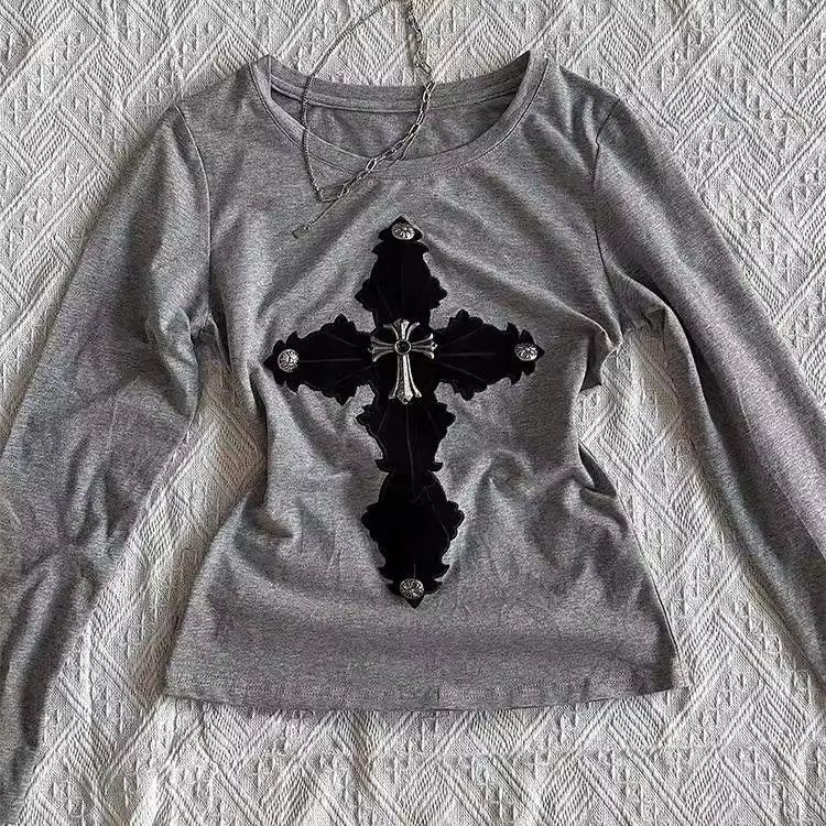 Lunivop American Retro Gothic Long Sleeve Printed T-Shirt Millennial Hot Girl Slim Fit T-shirt Harajuku Hip Hop Long Sleeve T-shirt