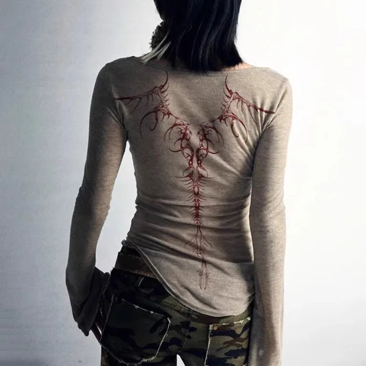 Lunivop American Slim Fit Printed T-shirt for Women 2025 Early Spring New Bottoming Tops Mujer Y2k Long Sleeved O-neck Tee Shirt
