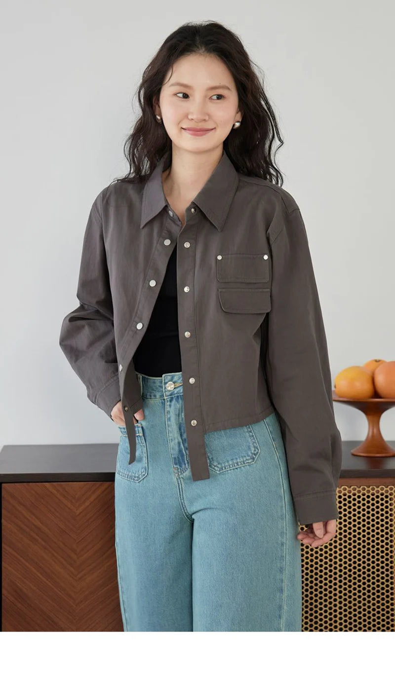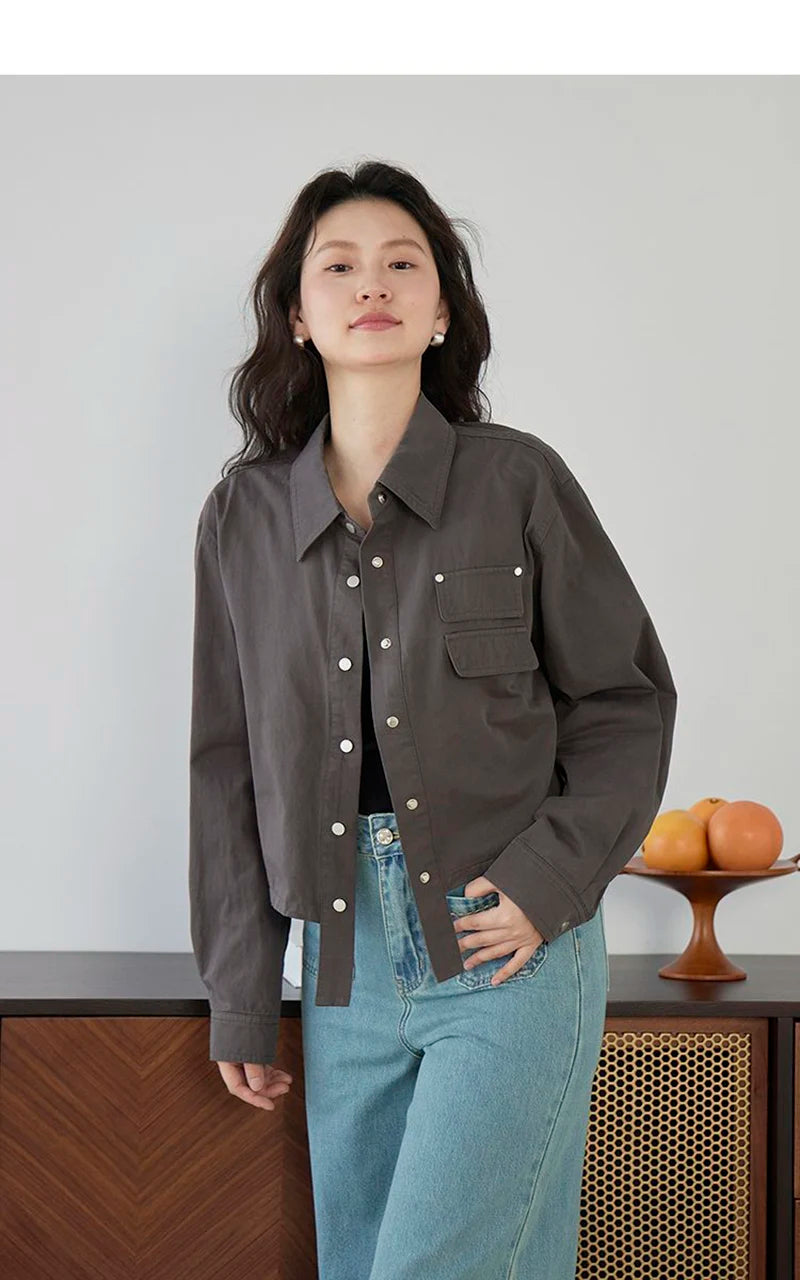 Lunivop American Y2K Cargo Jacket Women Fall Casual Long Sleeve Vintage Short Coat Harajuku Turn Down Collar New Solid Hip Hop Tops