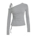 Lunivop Asymmetrical Off-shoulder Crop Top Grey Bandage Drawstring Long Sleeve Knitted T Shirts Korean Fashion Casual Tees Women