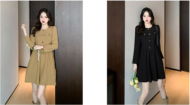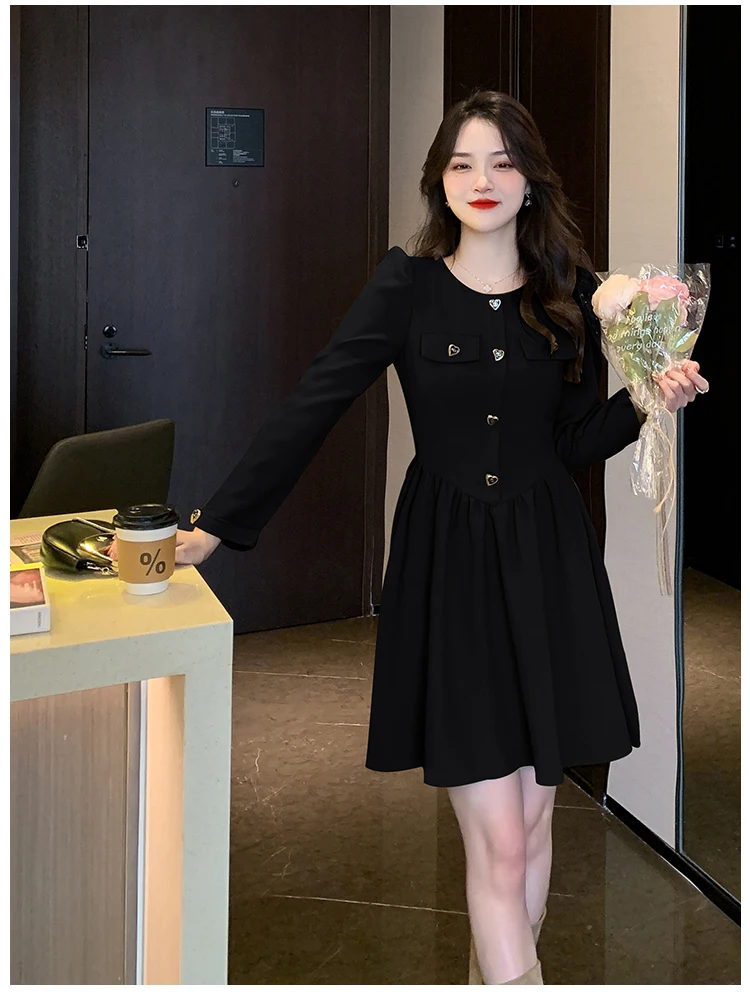 Lunivop Autumn and Winter Fashion Black Long Sleeve Office Women's Dresses Korean Retro Evening Temperament Elegant Slim Party Dresses