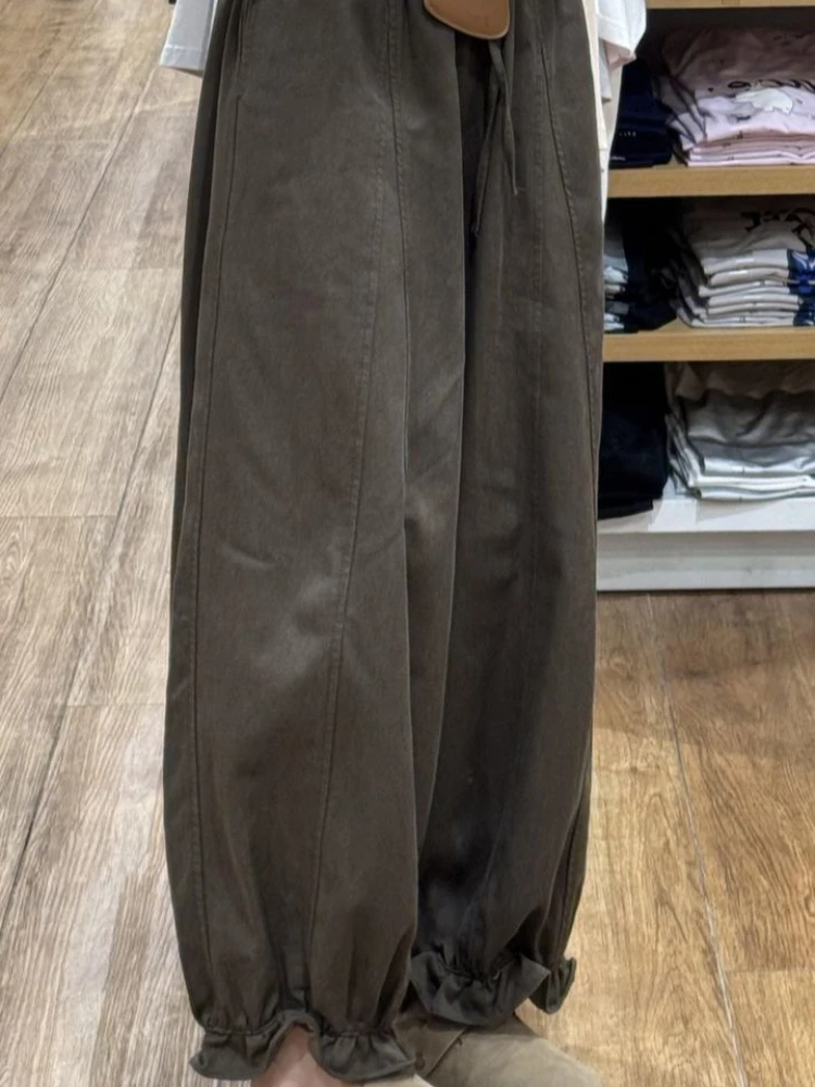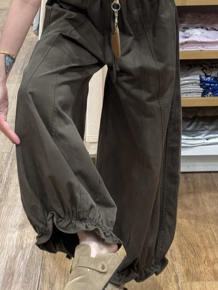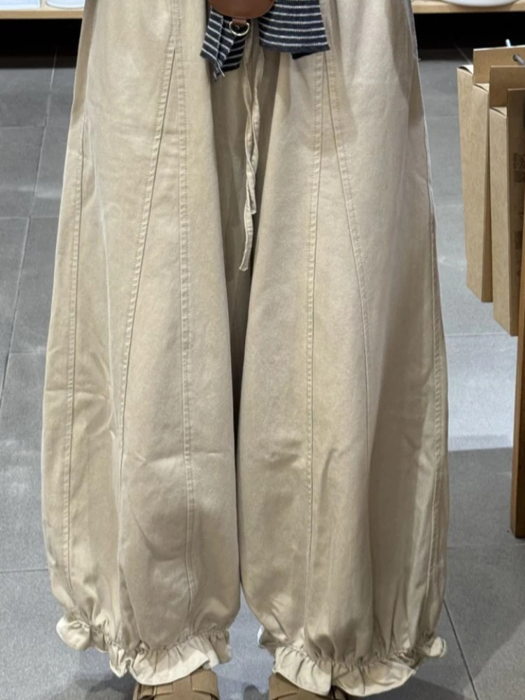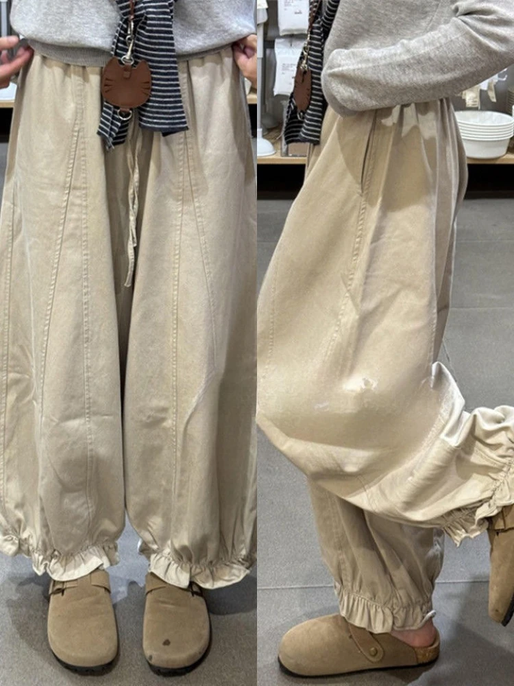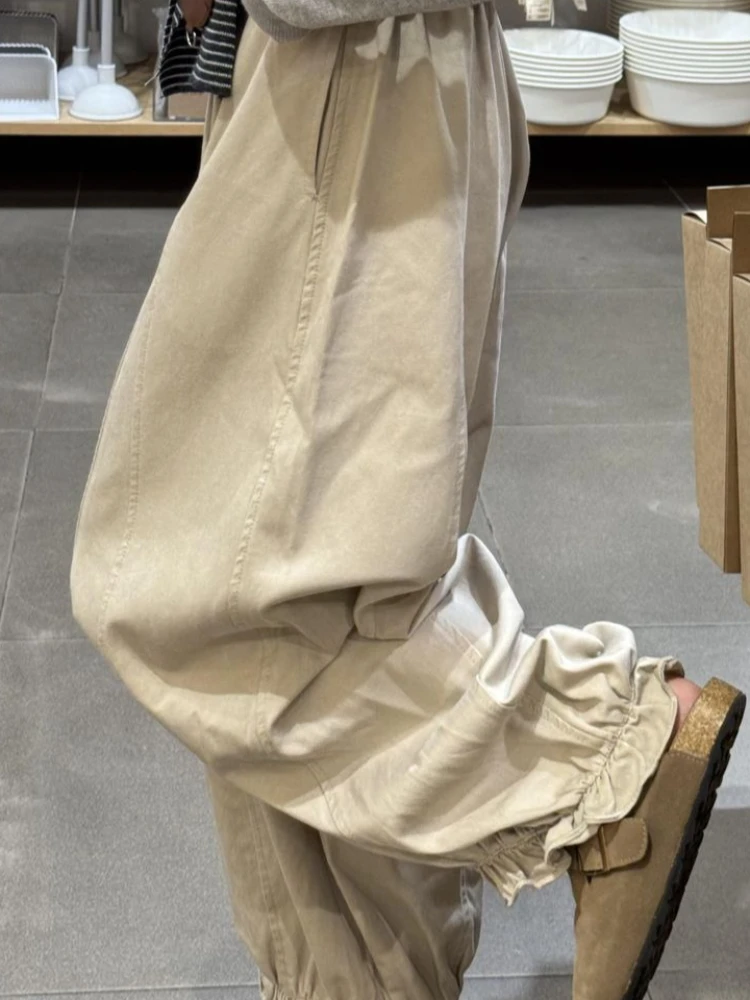 Lunivop Autumn Blooming Wide Leg Pants Women High Waist Cargo Trousers Balloon Fit Casual Streetwear Loose Versatile Cropped Pants