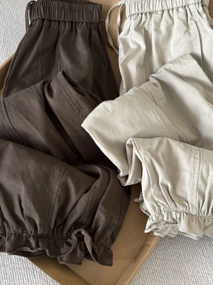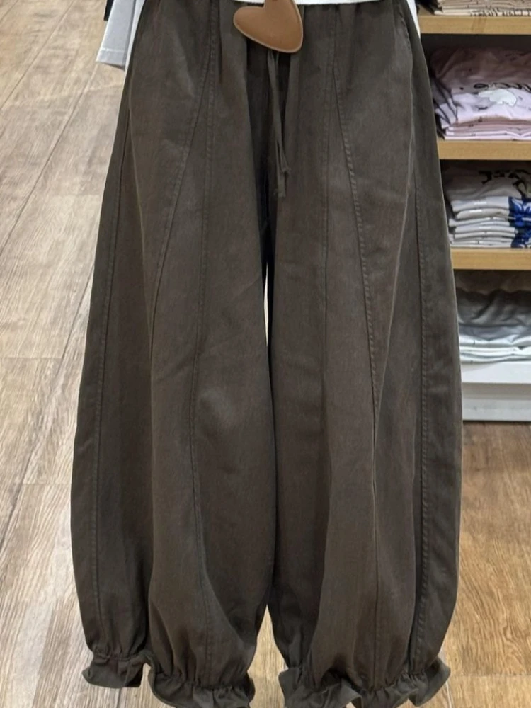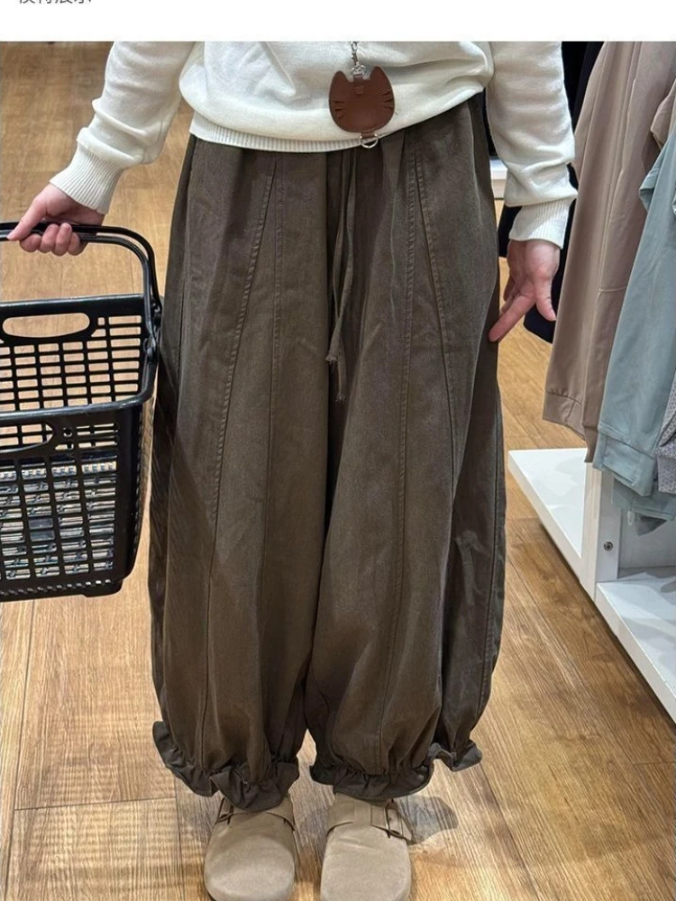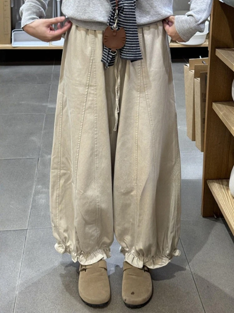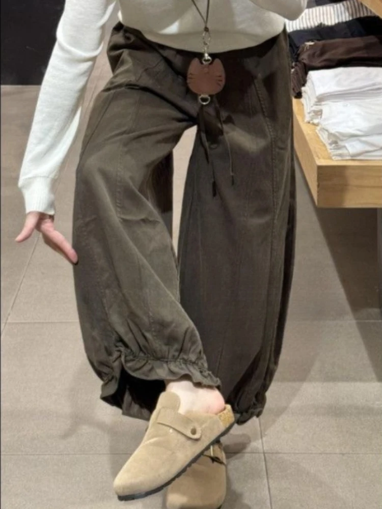 Lunivop Autumn Blooming Wide Leg Pants Women High Waist Cargo Trousers Balloon Fit Casual Streetwear Loose Versatile Cropped Pants