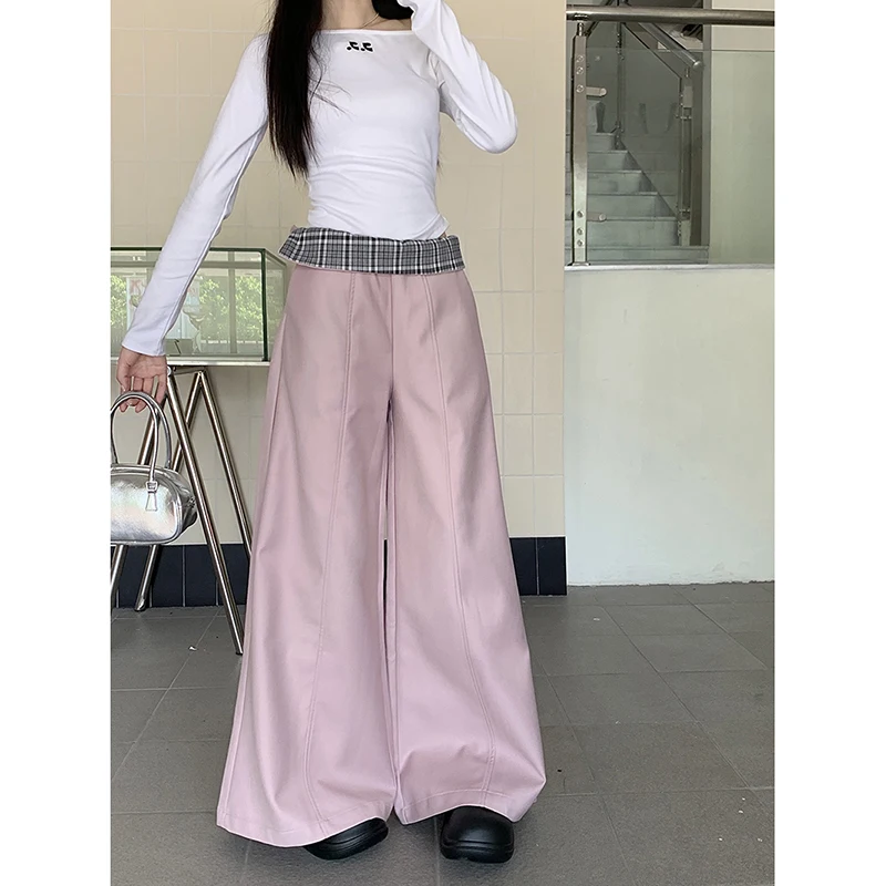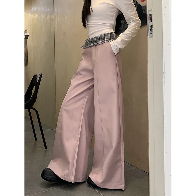 Lunivop Autumn Winter New Arrival Dark Gray Fashion Leisure Patchwork Ripped Straight Long Flare Grey Pants Casual Women Trousers