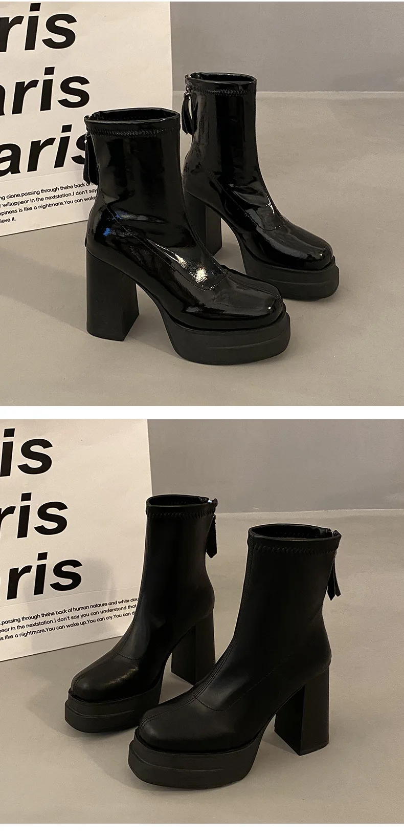Lunivop Autumn Winter New Chunky High Heels Platform Ankle Boots Women Stretch Fabric Round Toe Back Zipper Female Sexy Short Boots