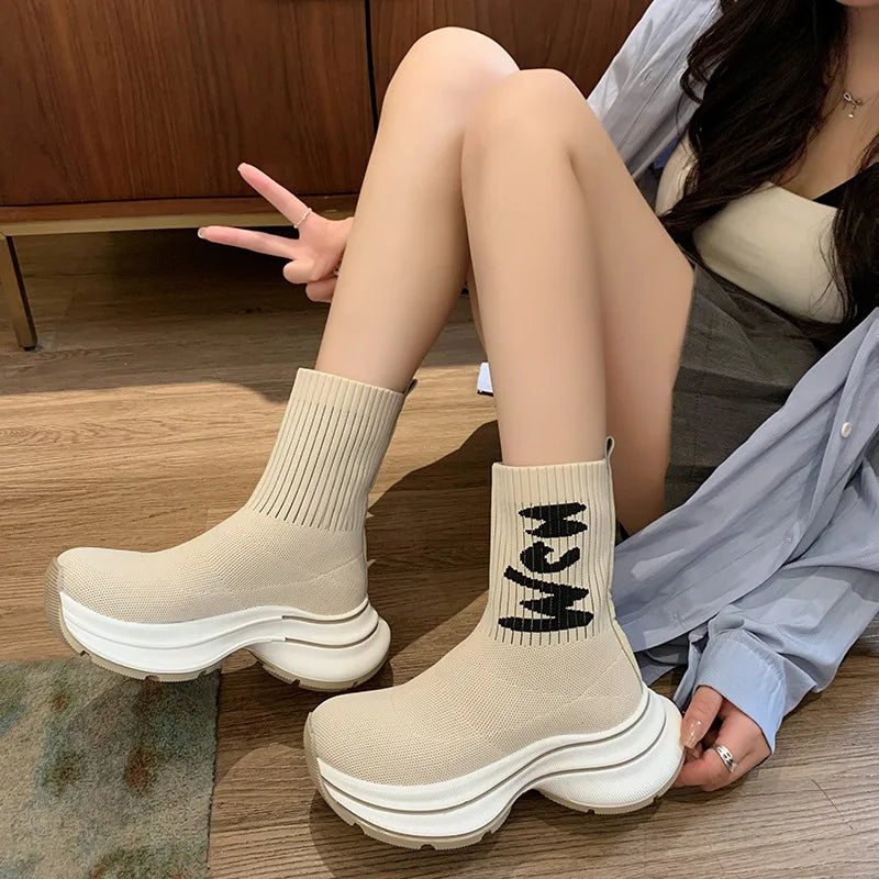 Lunivop Autumn Winter New Platform Socks Shoes Women Thick-soled Casual Net Knitted Short Boots Fashion Sport Women Botas De Mujer