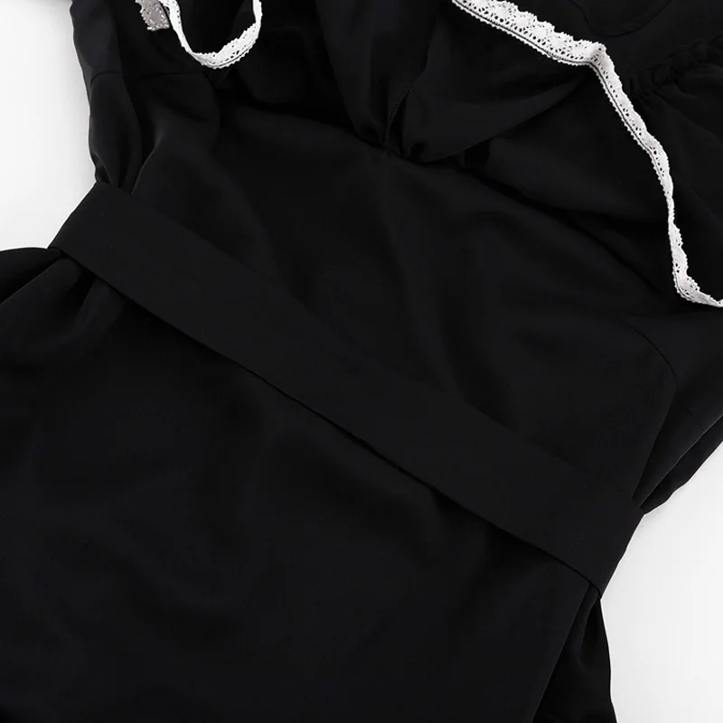 Lunivop Autumn Women Elegant Sweet Mini Dress Solid Black Long Sleeve Ruffle Flare Dress Female