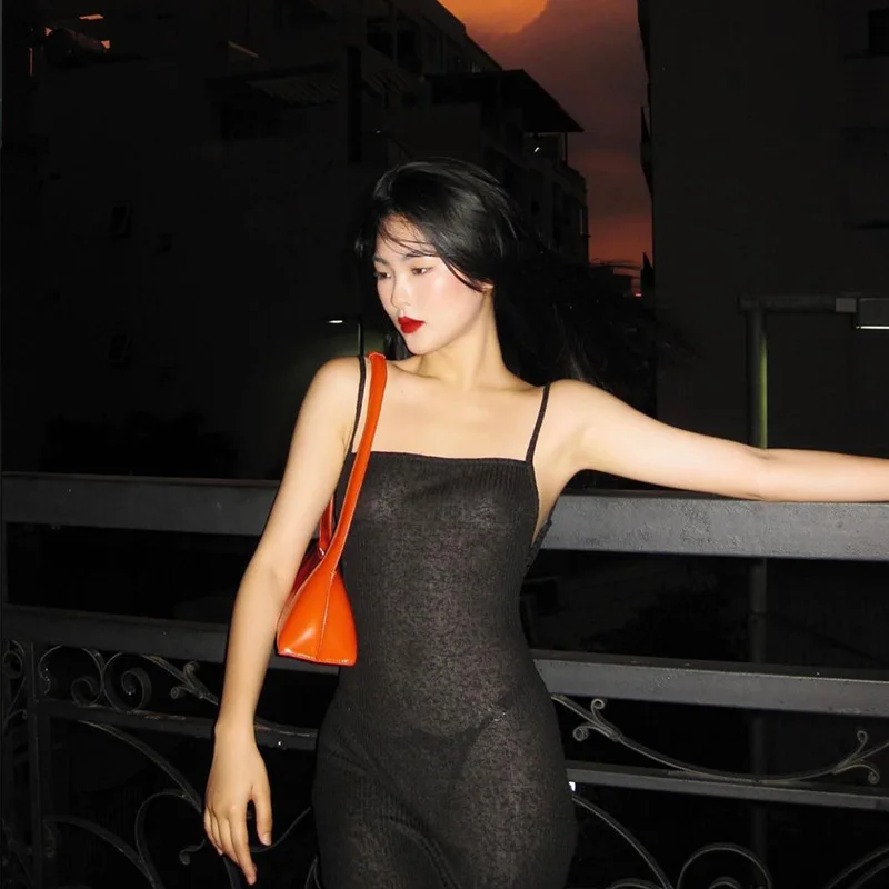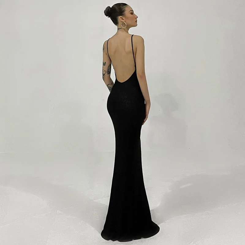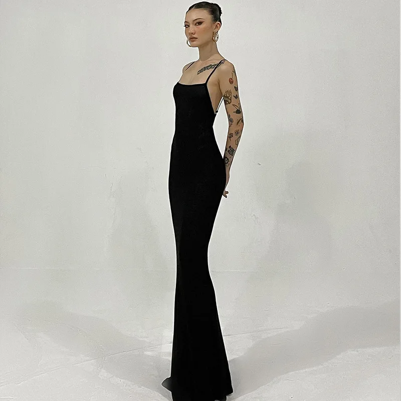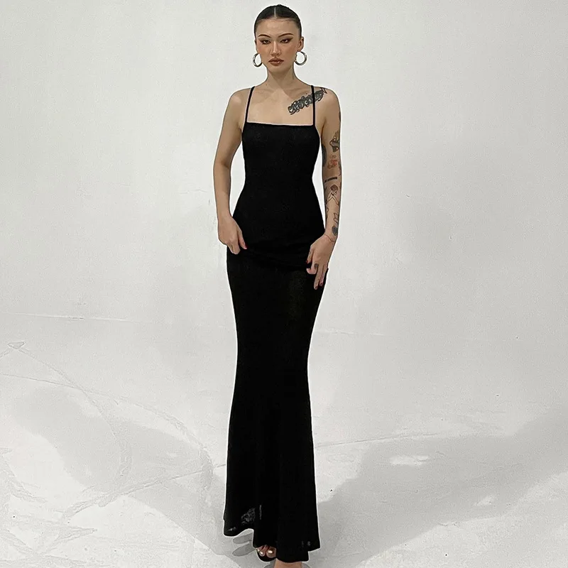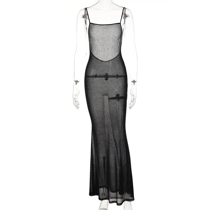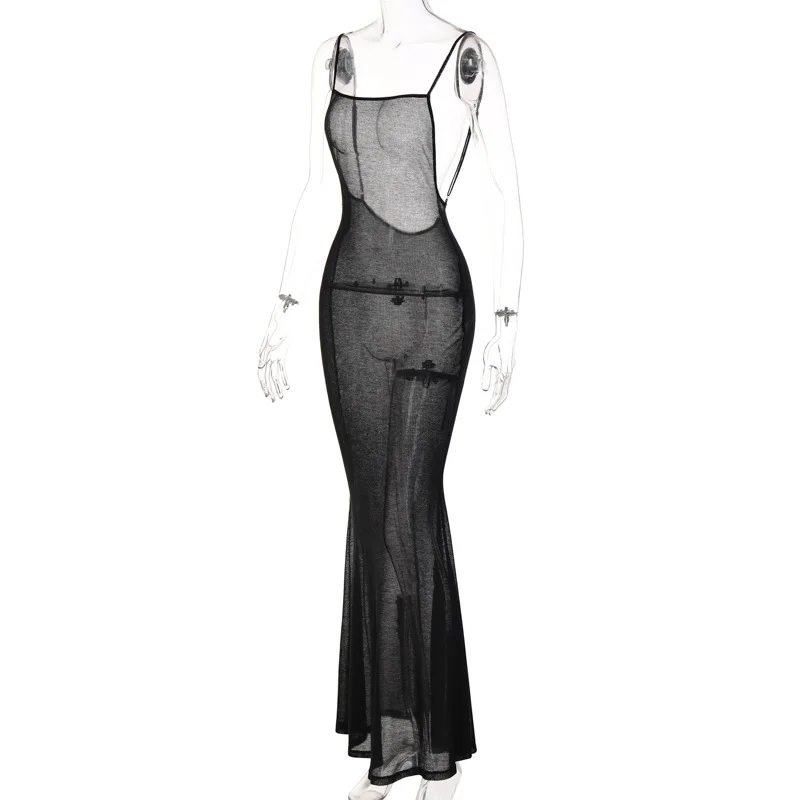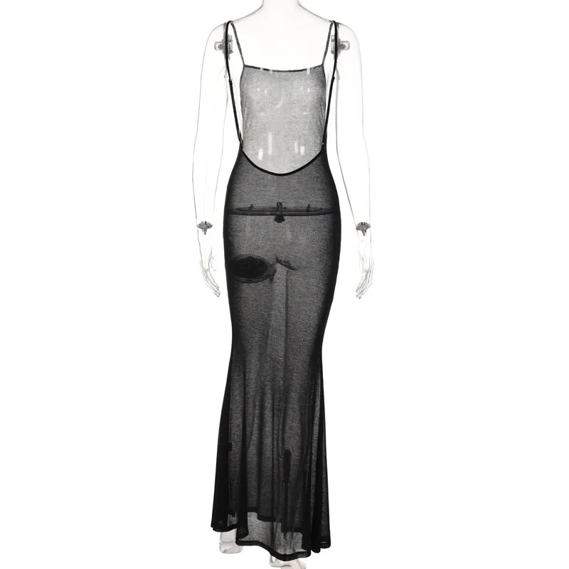 Lunivop Backless See Through Sleeveless Sexy Elegant Party Summer Women'S Dresses Y2K Maxi Solid Casual Evening Korean Clothing