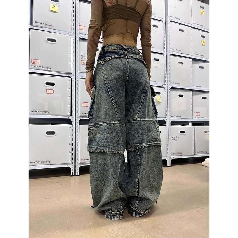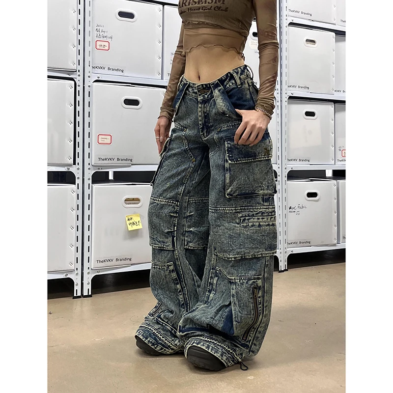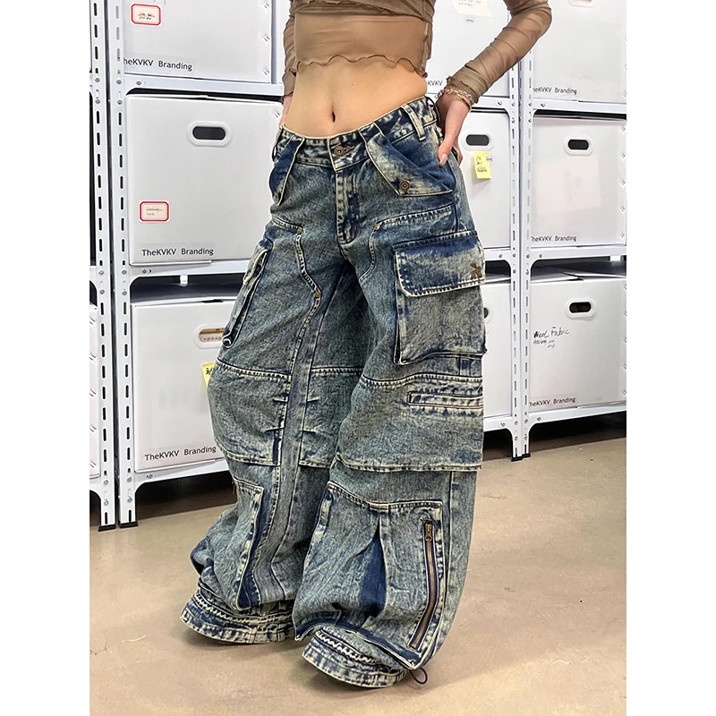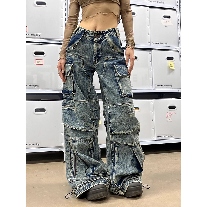 Lunivop Baggy Jeans Women Cargo Pants Streetwear Vintage Y2K 2000s Casual Loose Denim Pants Korean Straight Wide Leg High Waisted Jeans