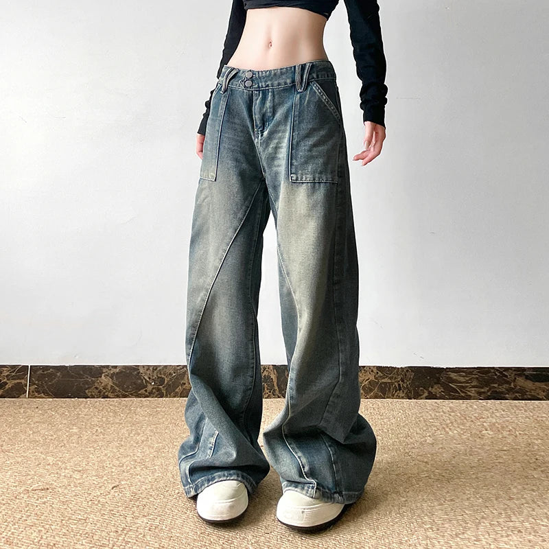 Lunivop Baggy y2k Distressed Jeans 90s Streetwear Low Rise Vintage Loose Denim Pants Patchwork Mom Jeans Autumn Harajuku Clothing
