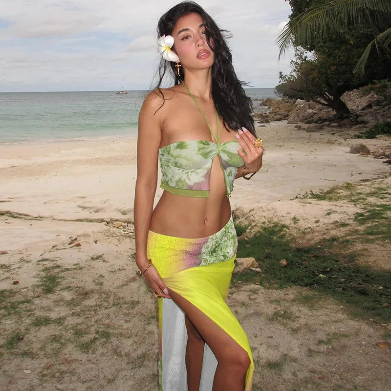 Lunivop Beach Skirt Sets for Women Fashion Printed Slim Bohemian Outfits Sexy Halter Crop Top and Maxi Skirt Holiday Two Piece Set