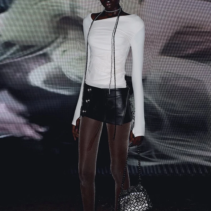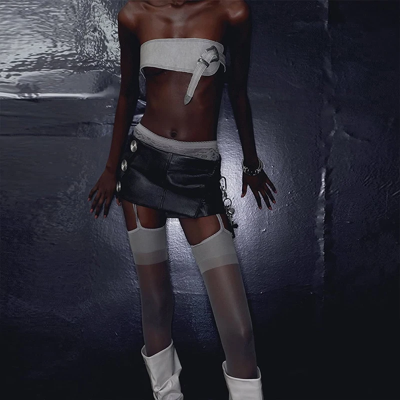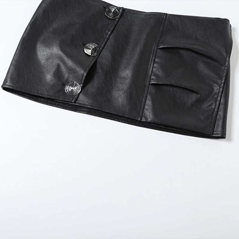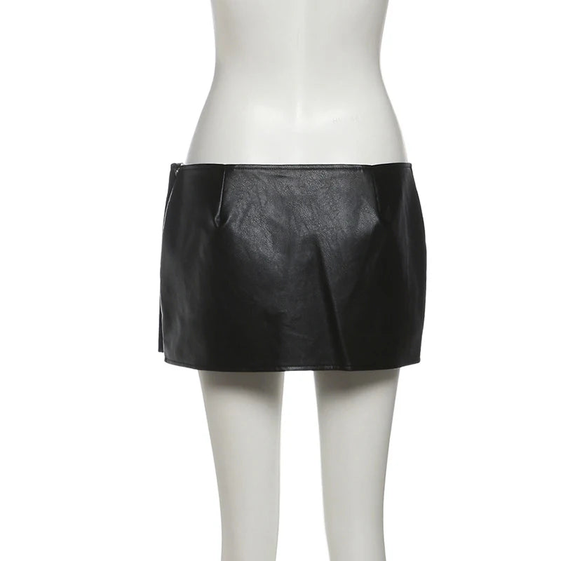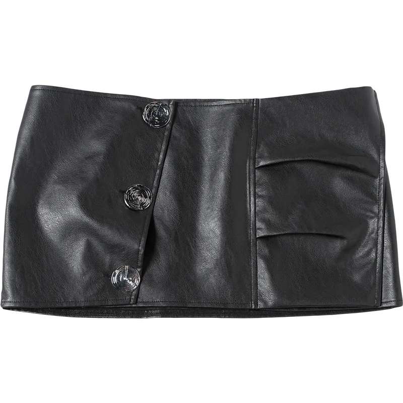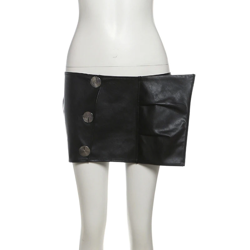 Lunivop BKLD Music Festival Nightclub Women Y2K Skirt Faux Leather High Waist Stylish Irregular Slimming Black Sexy Mini Half Skirt