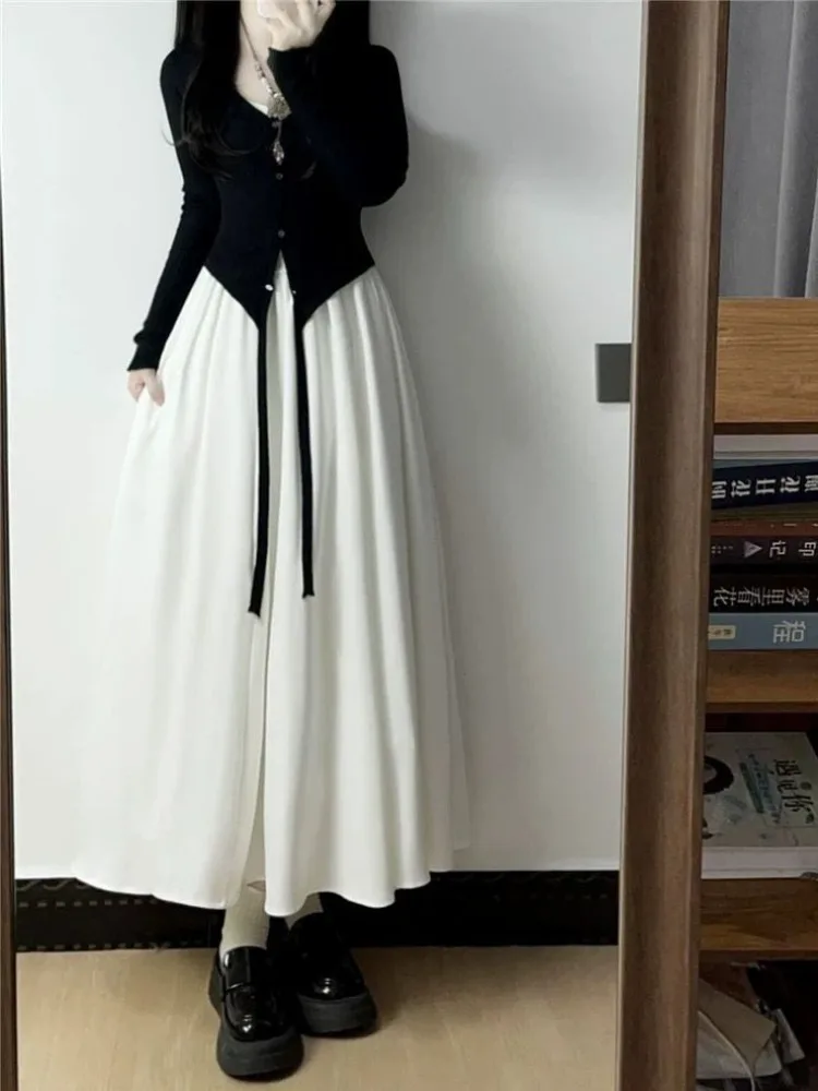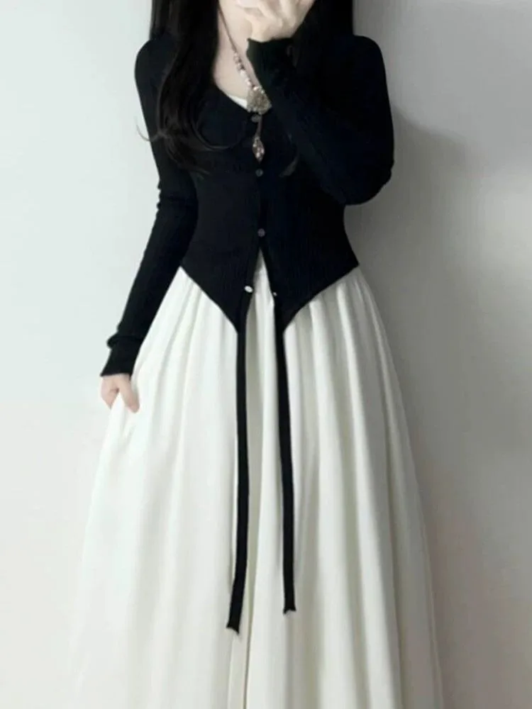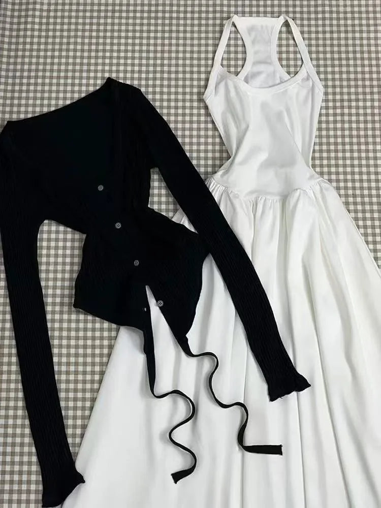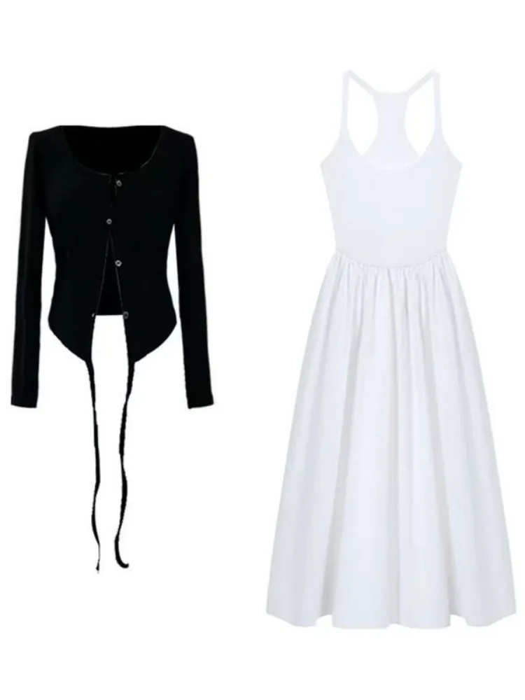 Lunivop Black Long Sleeve Sun Protection Coat Women+ Sexy Slim Waist White Camisole Vest Dresses 2025 Summer New Two Piece Sets
